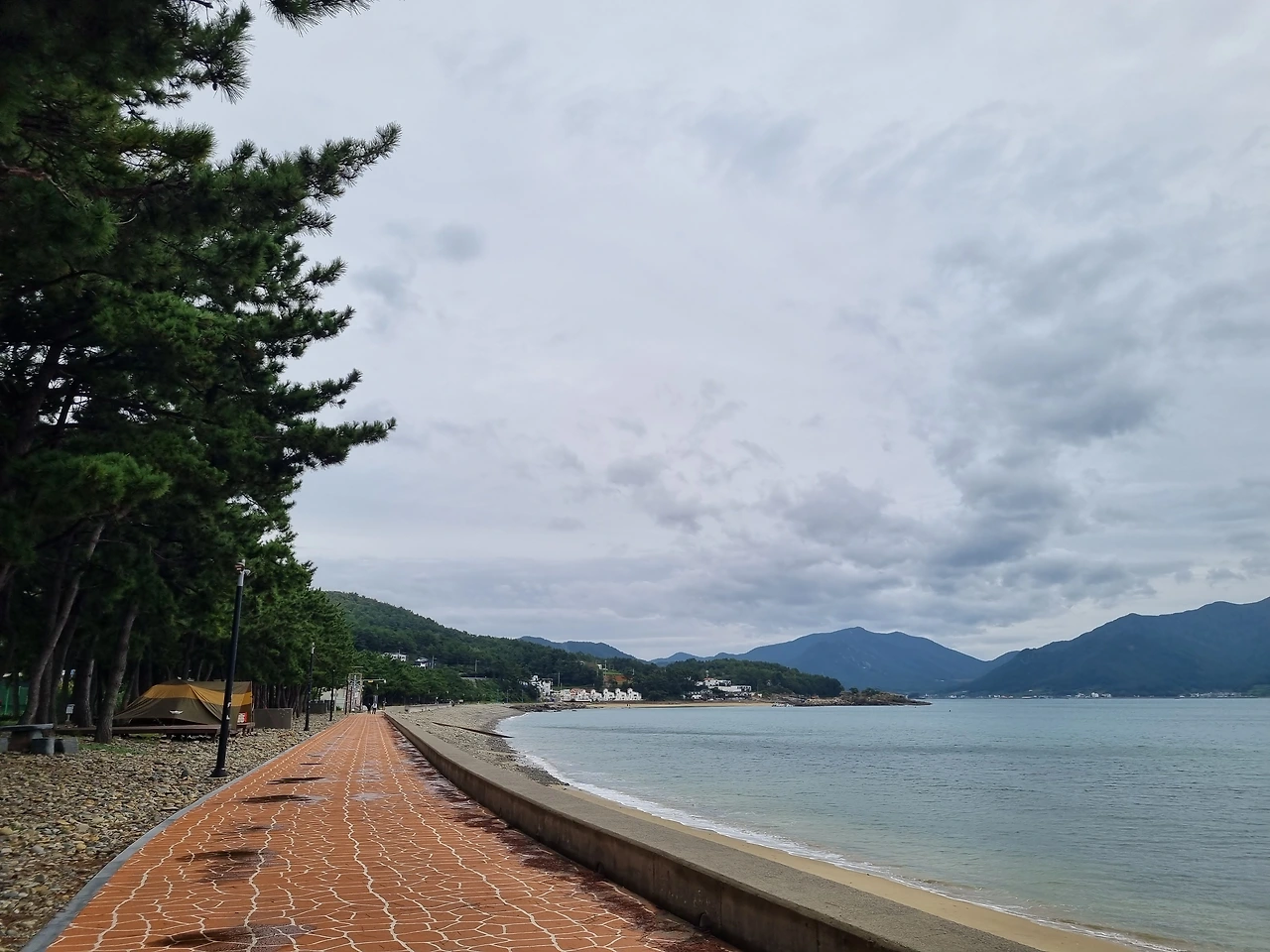 이른 아침 파도소리가 알람인 듯 저절로 눈이 뜨였다. 어제 늦은 저녁 펜션에 도착하여 바로 앞바다의 모습을 볼 수 없었다. 아침 일찍 바닷가 해변을 꼭 거느리라 마음먹었다. 이때가 아니면 또 언제 신선한 아침 바닷공기를 마셔보게 될지 모르기에. 밤사이 내린 비로 날은 흐렸지만 바닷가 운치만은 놓치고 싶지 않았다.