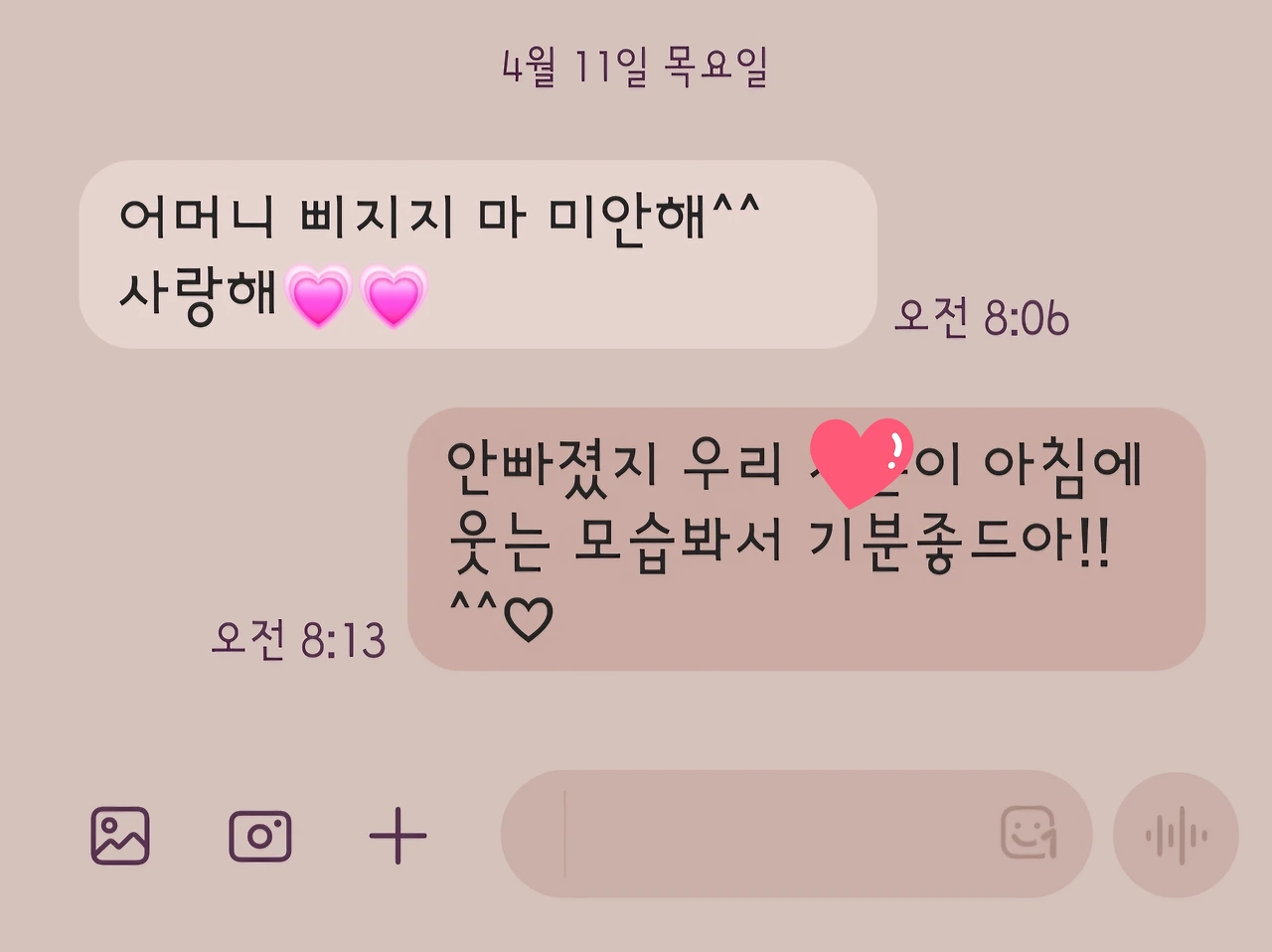 이 와중에 오타 낸 어미. 뭣이 중헌데. 딸이랑 같이 못 나가는 거 하나도 중요하지 않다. 문자하나에 사르르 마음이 녹아내린다.