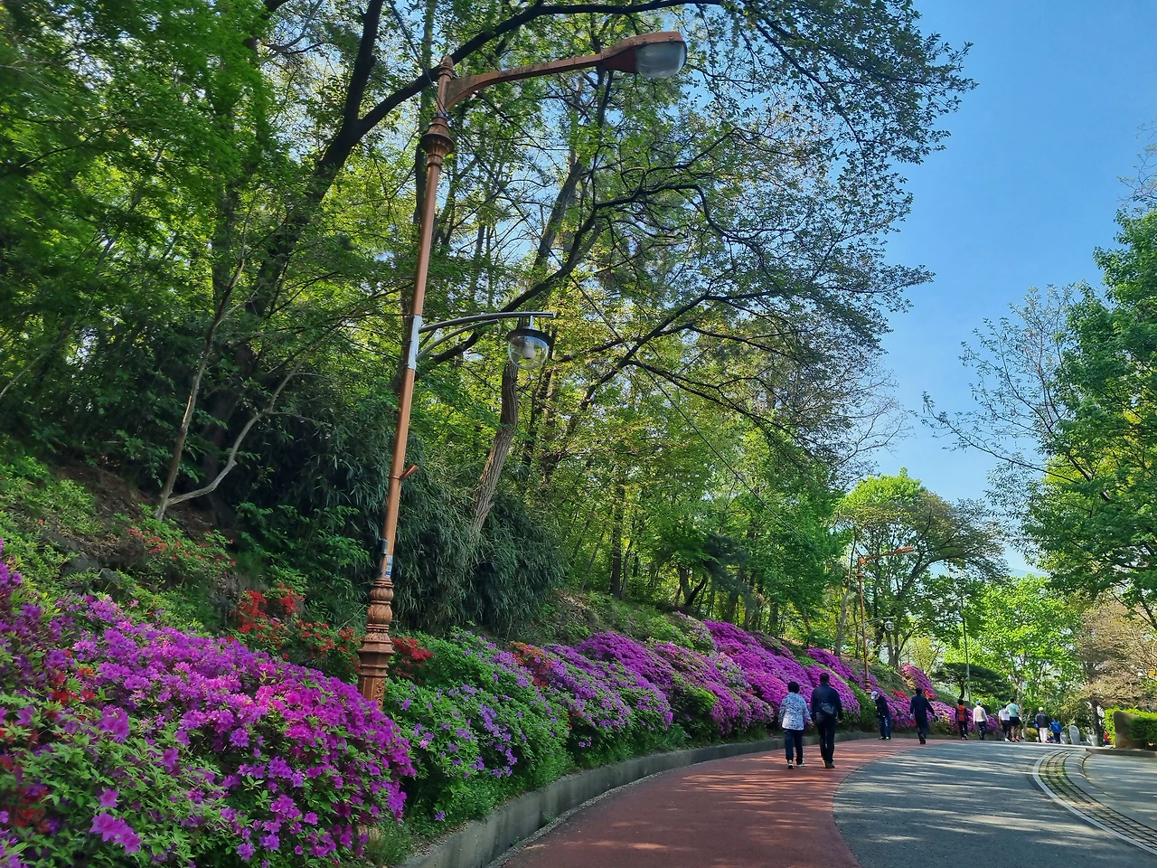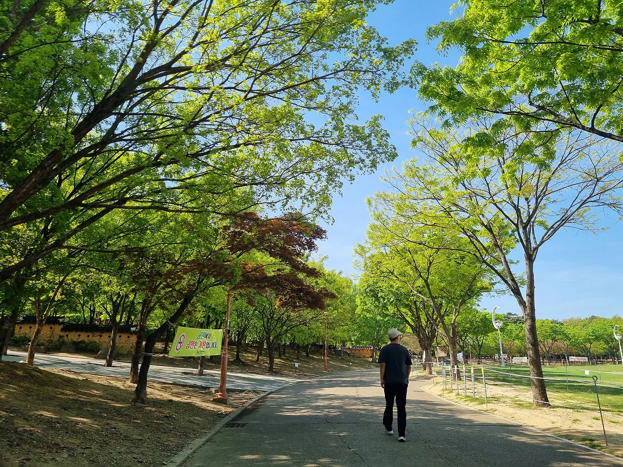 몸무게로 한바탕 웃고 남편과 공원에 걸으러 나왔다. 아이들도 데려가고 싶었지만 일요일 아침이라 봐줬다. 아침부터 반팔만 입고 나와도 될 정도로 기온이 올랐다. 꽃도 예쁘지만 초록이 무성하게 우거진 나무들이 더 싱그럽게 다가왔다. 내 눈이 부러울 정도였다.