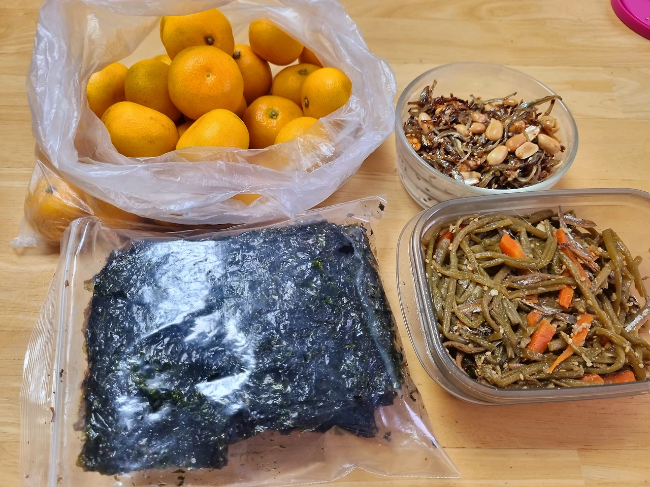 고구마줄기를 반찬통에 들고 오셨는데 나말고는 먹을 사람이 없다. 밀감과 직접 구운 김도 가지고 왔다. 포도는 둘째 손녀가 좋아해서 들고 왔단다. 어머니 가방은 여전히 선물보따리처럼 음식이 자꾸 나온다. 좋으면서도 한편으론 저렇게 무거운 거 들고 다니시느라 무릎 아프다고 하면 난감하기도 하다. 들고 오지 마라 하면 또 아들집에 올 낙이 없어질 테고.