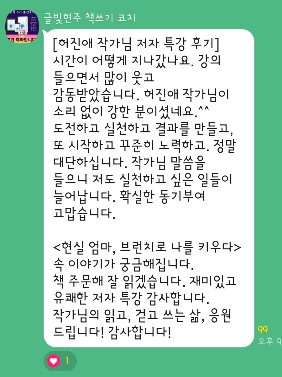 23년 9월 즈음. 브런치스토리에 글을 쓰고 있던 중 '글장이'라는 필명이 나를 구독했다. 어떻게 하면 글을 더 잘 쓸 수 있을까 고민하던 때라 필명부터 눈에 띄었다. 두 달 동안 글을 매일 읽었다. 글장이 작가는 하루에 한편 또는 세편도 발행하였다. 글쓰기에 관한 내용이 글을 계속 쓰고 싶게끔 만들어주었다. 손이 닿지 않는 가려운 부분을 시원하게 긁어주었다. 글쓰기&책쓰기 강의를 하는 강사였다. 두 번의 무료특강을 들은 후 나는 이곳과 함께하기로 결정했다. 이곳은 현재 623호 작가를 탄생시켰다. 그중 나는 611호 작가로 출간하였다.