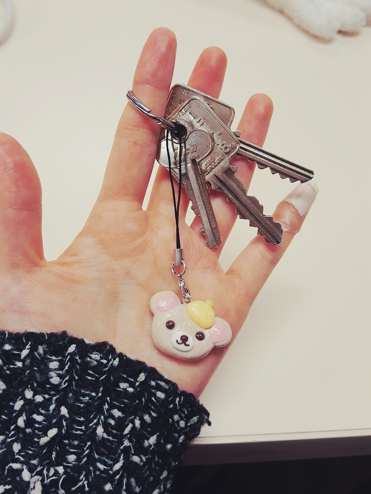 이번 학기 세션들은 코바느질로 하트모양을 만들었던 한 번을 제외하고는 모두 clay charm 만들기 였다. 제일 첫 세션에서 만든 릴라쿠마는 모자 심이 떨어지기 전까지 나의 열쇠고리로서 제 역할을 톡톡히 했다.