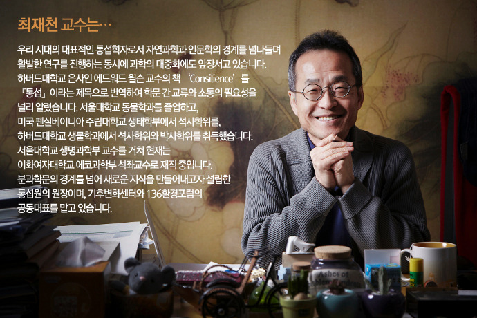 2000년대 초반 윌슨의 《컨실리언스>를 최재천 교수가 《통섭》이란 제목으로 번역 출판하면서 ‘통섭’은 우리 지식계의 진지한 화두가 되었지요. 통섭을 주제로 심포지엄이 열렸고, 대학과 기업에 ‘융합’ 혹은 ‘통합’의 바람이 거세게 일었습니다. 사회생물학뿐 아니라 진화경제학, 행동경제학 등의 학문이 생겨났고, 융합학과를 개설하는 등 새로운 시도들이 등장합니다.