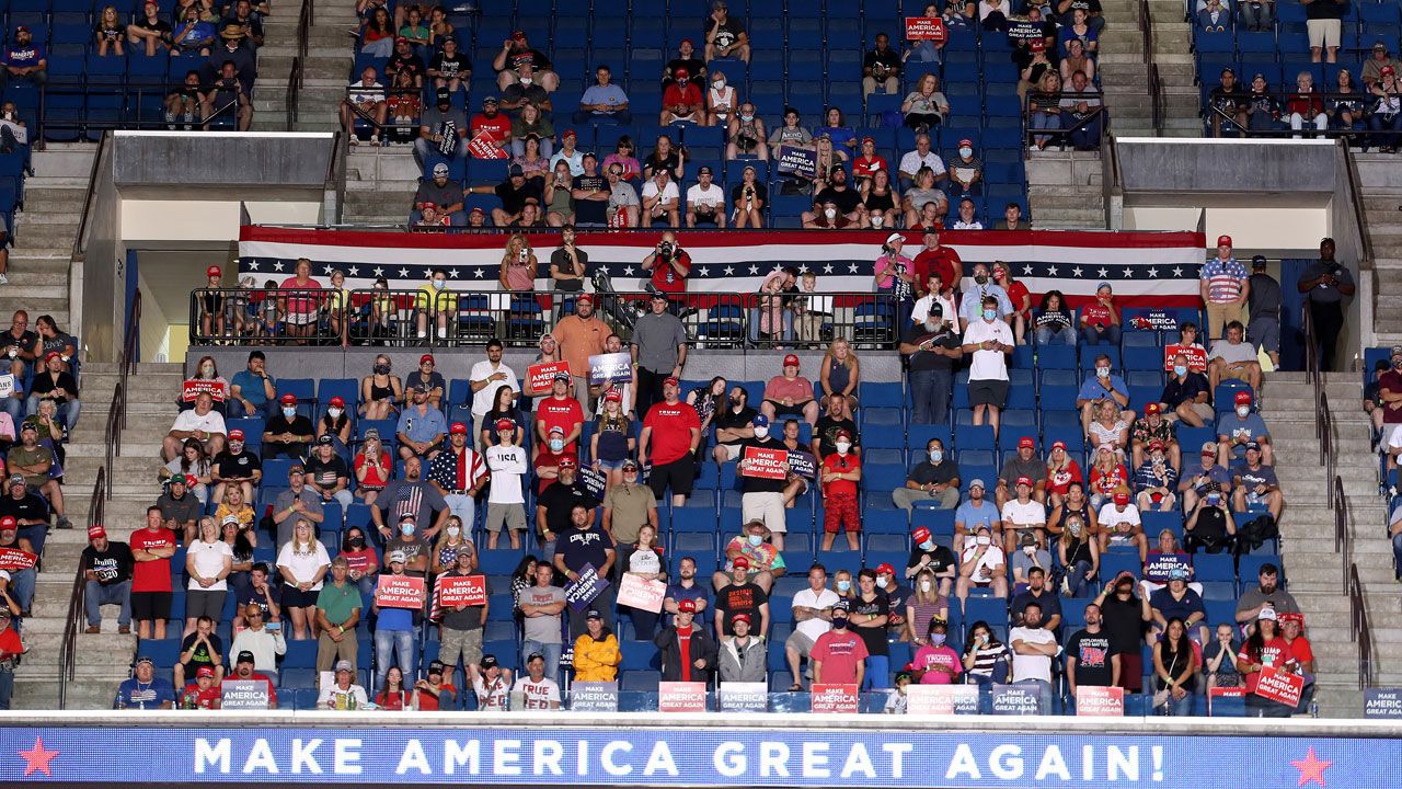 유세에 참석하겠다는 티켓이 100만장 이상 팔렸다고 자랑, 자랑하시더니 결국은 1만 9천석 유세장에 3/1 인 6천석 정도만 좌석을 메우는데 그쳤다. 알고 보니 K팝을 따르는 소녀(특히 BTS 팬)들이 트럼프를 약 올리려고 티켓을 산다고 SNS에 자랑하며 거짓으로 루머를 퍼트렸다는 말이 있을 정도로 10대 아이들에게도 인정받지 못하고 있다. 특히나 바이러스 감염을 우려하는 많은 사람들을 뒤로 6월 20일 실내 체육관에서 대규모 대선 유세를 재개한 그는 애초 BOK센터 밖에서도 연설을 예정했으나 관중이 없어 취소했다.