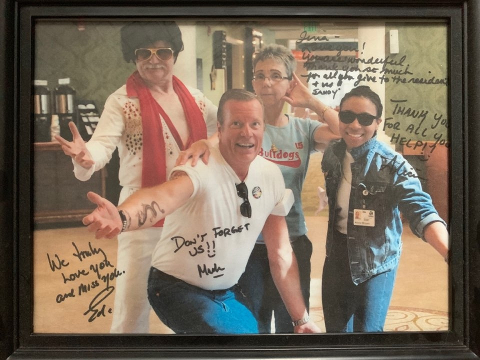 나랑 같이 일하는 팀의 팀장은 ‘마크’라고 파란 로렉스 시계를 차고 빨간 팬티를 입었다며 자랑스럽게 보여주는 게이다. 나이가 좀 있어 보이지만 혼자 엄마랑만 살아서인지 젊은 옷과 운동으로 단련된 몸으로 할머니들의 사랑을 한 몸에 받은 멋쟁이다. 단지 한국 여행을 간다는데도 행여 다시 오지 않을까 걱정된다며 팀원들이 코스튬 복장으로 코믹 사진을 찍고 사인을 하고 액자까지 만들어 나를 화들짝 놀라게 하는 재주 많은 사람이기도 하다.