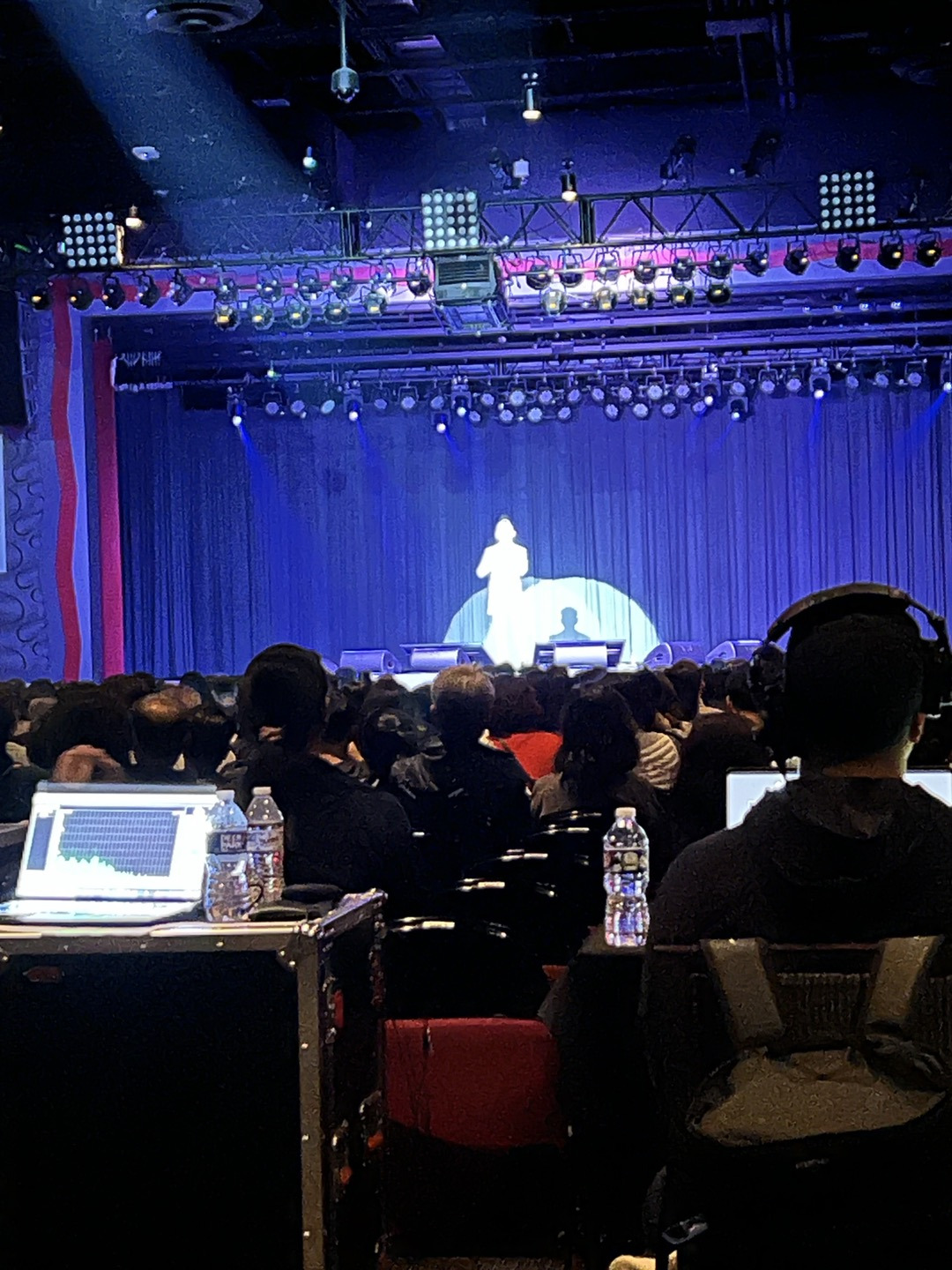 티켓을 확인받고 이벤트홀에 들어섰다. 내가 상상한 콘서트는 불빛이 요란한 싸이키 조명이 돌아가고 시끌벅적하게 젊은이들이 소리 지르고 어지러운 장면들이 이어져야 하는데 조용하다. 조용히 자리를 잡고 서로 누군가를 확인하고 멀리 무대가 보이고 중간에 불빛이 요란한 컴퓨터들이 놓여 있고 무대는 현란하진 않지만, 커튼 뒤의 모습들이 연상되게 조용히 테이의 영상이 돌아가고 있었다.