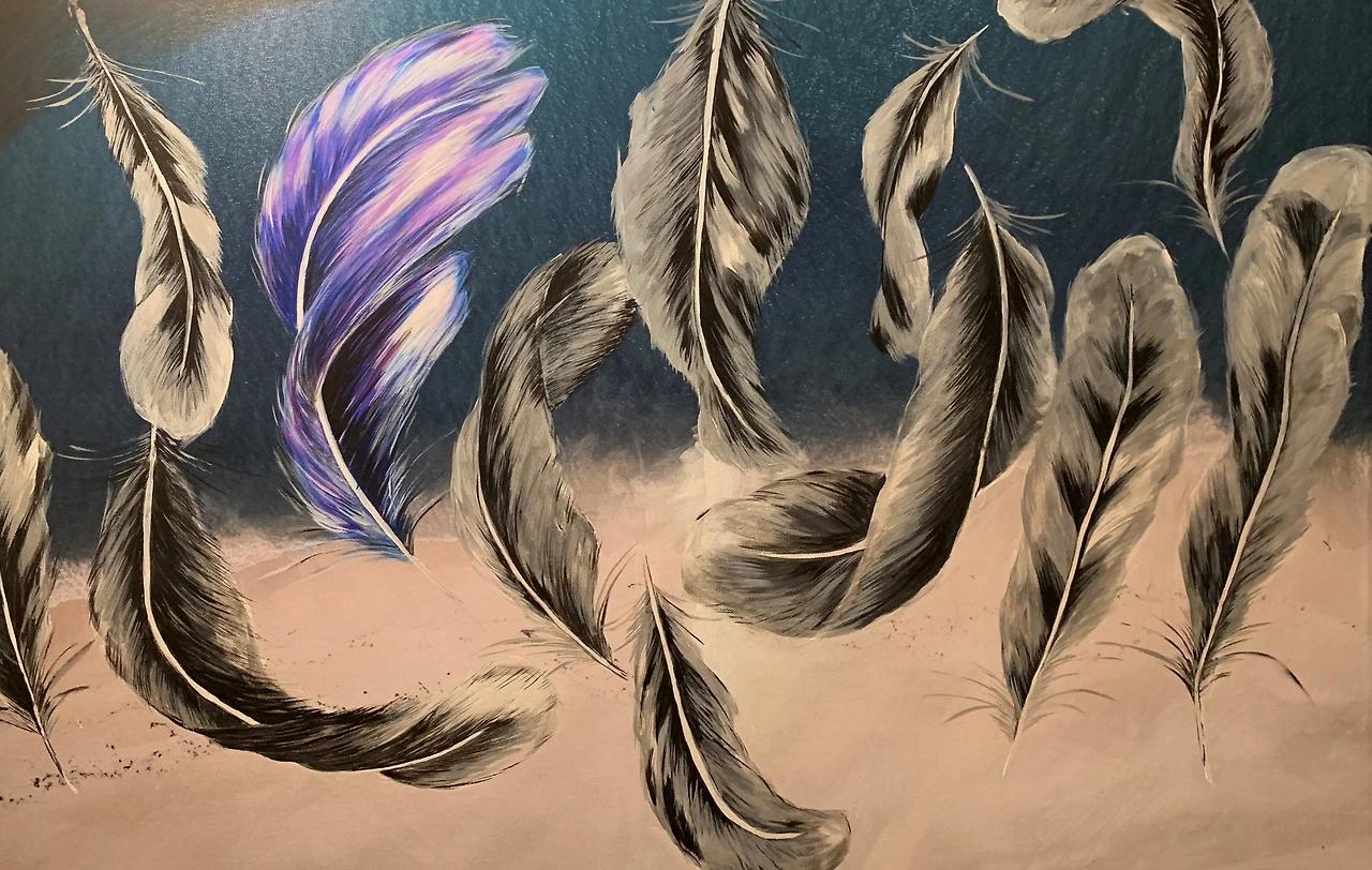 색감이 놀라울 정도로 다양해서 처음엔 하나하나를 관찰하며 그리다 깃털을 뒤집어서도 그려보고 한 줄로 세워 놓은 모양도, 몽땅 다발로도 그려보고, 아크릴을 유화처럼 진하고 묵직하게, 또 아크릴을 수채화처럼 맑고 투명하게 물이 흐르듯 그렸더니 집안 전체에 여러 색감의 깃털 그림만 가득해져서 우리 아이들이 새장 안에 있는 거 같다고도 했다. 누군 나에게 그렇게 깃털을 그리다 내 몸 어딘가에서 날개가 나올지도 모른다며 날개를 감추고 있어야 될 거 같다고 했다. 지금도 너무나 가벼운 깃털들이 집이라는 공간 안에서 자유롭게 날아다니고 있다.