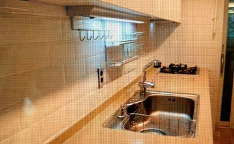 내가 시집을 갈 때쯤이니까 90년대 중반 ‘젠’이라 해서 일본에서 유래가 된 인테리어가 선풍적인 인기를 끌었다. 모든 게 그때의 나처럼 직선적이고 깔끔하고 날카로운, 간단한 소품 이외에는 탁자 위에 너저분하다고 생각되는 소품 하나 없고 색감도 절재 되어 무채색에 가까운 흰색 회색 거기에 포인트로 진파랑 색 정도만을 추가해 집안에 아무도 살지 않는 것처럼 하는 디자인이 유행이었다. 역시 부엌 또한 흐름을 같이 했는데 새로운 집 주방들을 연 브라운 나무색에서 온통 흰색 톤으로 갈아치웠다. 부뚜막의 회색 톤과 어우러진 나무와 흰색의 과도기쯤으로 해석된다.