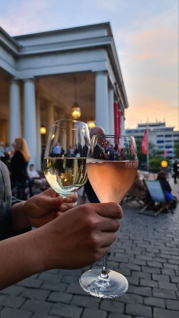 중간 휴식시간에 노을을 안주 삼아 마시는 리즐링 와인과 로제 젝트(Rose Sekt)