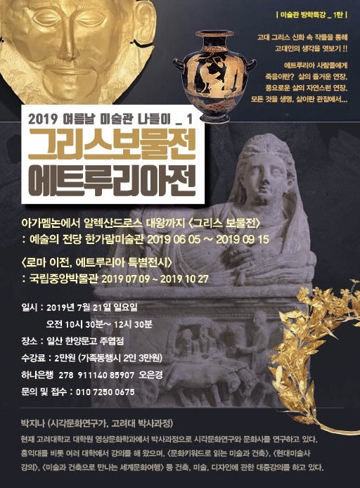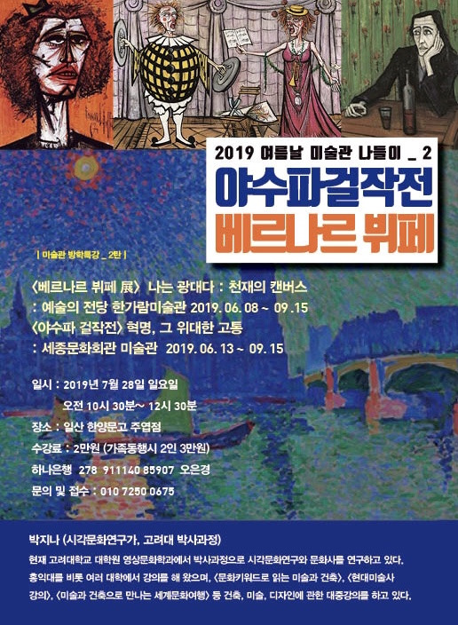 올여름에도 다양한 미술전시들이 풍성하다. 따라서 나름의 이야기를 가지고 몇몇 장소에서 방학 때 보면 좋은 미술전시에 관련된 강의하게 되었다. 대표적으로 <그리스보물전>과 <로마 이전, 에트루리아전>, <야수파걸작전>과 <베르나르 뷔페 전>이 그것이다.