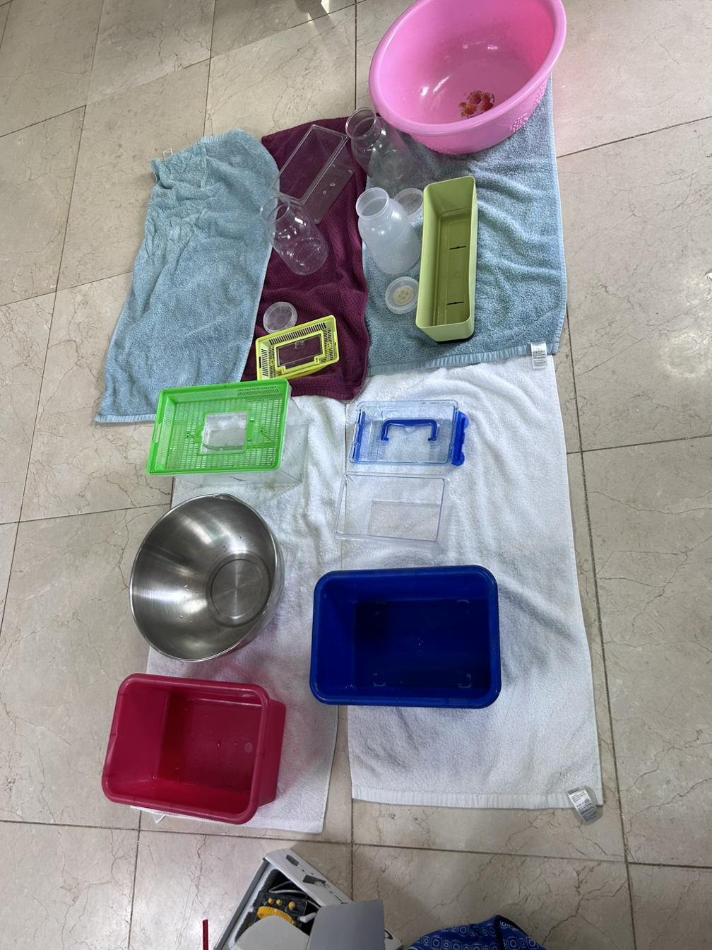 쓰레기를 정리하며, 먼지가 뽀얗게 쌓여 더러워졌지만 다시 써야 하는 물건들이 보인다. 물티슈로 쓰윽 닦아서 먼지를 닦아낸다. 물티슈로 해결되는 것도 있고 아닌 것들도 있다. 아이들의 곤충 채집통이 너무 더럽다. 아이들에게 화장실 가서 깨끗이 닦아 오라고 시킨다. 자기들이 좋아하는 물건들이니, 신나게 씻어 온다. 아이들에게 이런 말도 잊지 않고 한다.