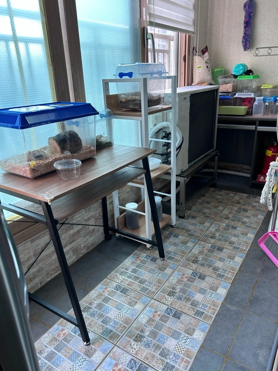 그렇게 하나 둘 늘어나는 곤충만큼 사육 공간이 필요했다. 공간이 없어 거실 한 공간을 차지하고 있는 게 영 마음에 걸렸다. 영양제 2알을 먹고 레모나까지 챙겨 먹고 야무지게 검은 라텍스 장갑을 끼고는 아이들에게 선포한다.