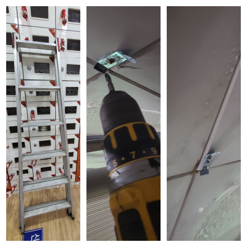 운동화 신고 땀범벅 각오하고 올라간다. 사다리를 타고 다시 작업 개시. 지난번 의자에서 엉덩방아 찧고 찜질방 전체에 소문났던 흑역사가 떠올라 이번엔 맨발 NO. 운동화 YES다. 천장에 스냅을 달기만 하면 끝이겠다 싶었다. 큰 오산이었다. 천장이 비어 있었다. 헛도는 나사. 헛도는 나의 인생. 한참을 망연자실하다가 또 하나의 아이디어가 번뜩였다. 본드와 가장 긴 나사를 조합하면 어쩌면 가능하지 않을까? 이게 안 되면 천장을 뜯을 각오까지 하고 있던 상황. 그리하여 본드를 바르고 나사를 밀어 넣고 헛도는 나사와 싸우고 또 싸웠다. 결국 딱 고정됐다.