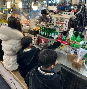 마침 자리는 있는데 비좁다. 일단 아이들과 내가 앉고 신랑은 서서 기다린다. 매서운 바람이 부는 날씨였다. 다행히 열선이 있는 최신식 시장의자 덕분에 엉덩이가 뜨끈뜨끈해진다. 맛있어 보이는 게 너무 많았지만 짧은 고심 끝에 드디어 주문을 한다.