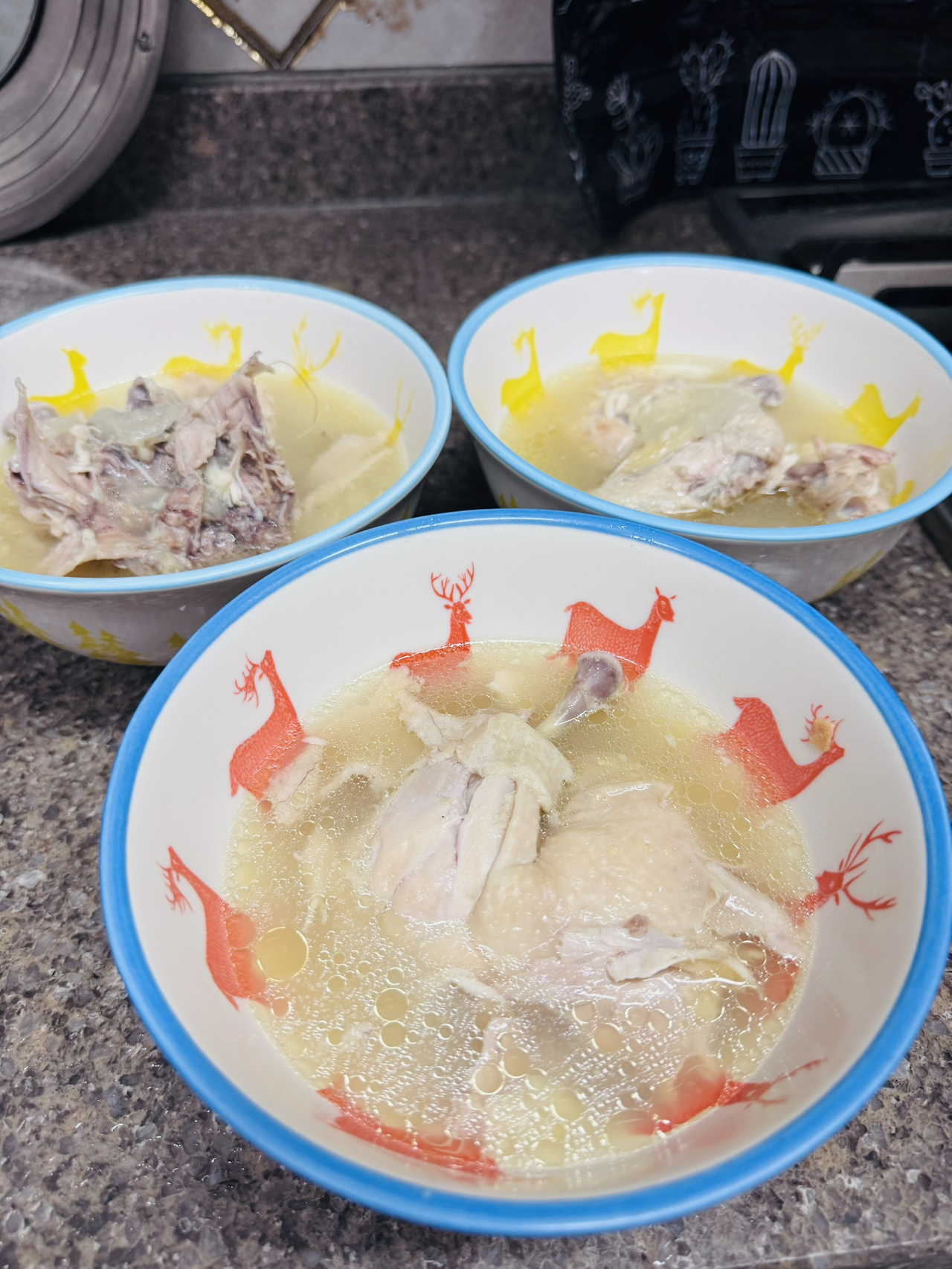 엄마와 아빠는 점심 먹은 지 얼마 안 되었다며 세 그릇만 담으셨다. 커다란 닭 2마리를 사 오셔서 냄비 2개에 나눠 끓여서 한 그릇에 닭다리 한 개씩 담으셨다. 분명 입맛도 없고 누워만 있고 싶었는데 기운이라도 차려야겠다고 생각하며 국물을 한입 마셨다. '맞아. 이 맛이지.' 엄나무, 뽕나무, 황기 등 각종 전통약재가 듬뿍 들어가 있고 양파와 통마늘을 수북이 넣어 달콤한 국물 맛. 그리고 인삼까지 많이 넣어 사포닌향도 느껴지는 그런 국물 맛. 그리고 뼈를 골라낼 필요 없이 푹 익어 뼈가 저절로 분리되어 있고 야들야들하고 부드러운 살코기의 맛. 아이들도 맛을 보더니 한마디 한다.