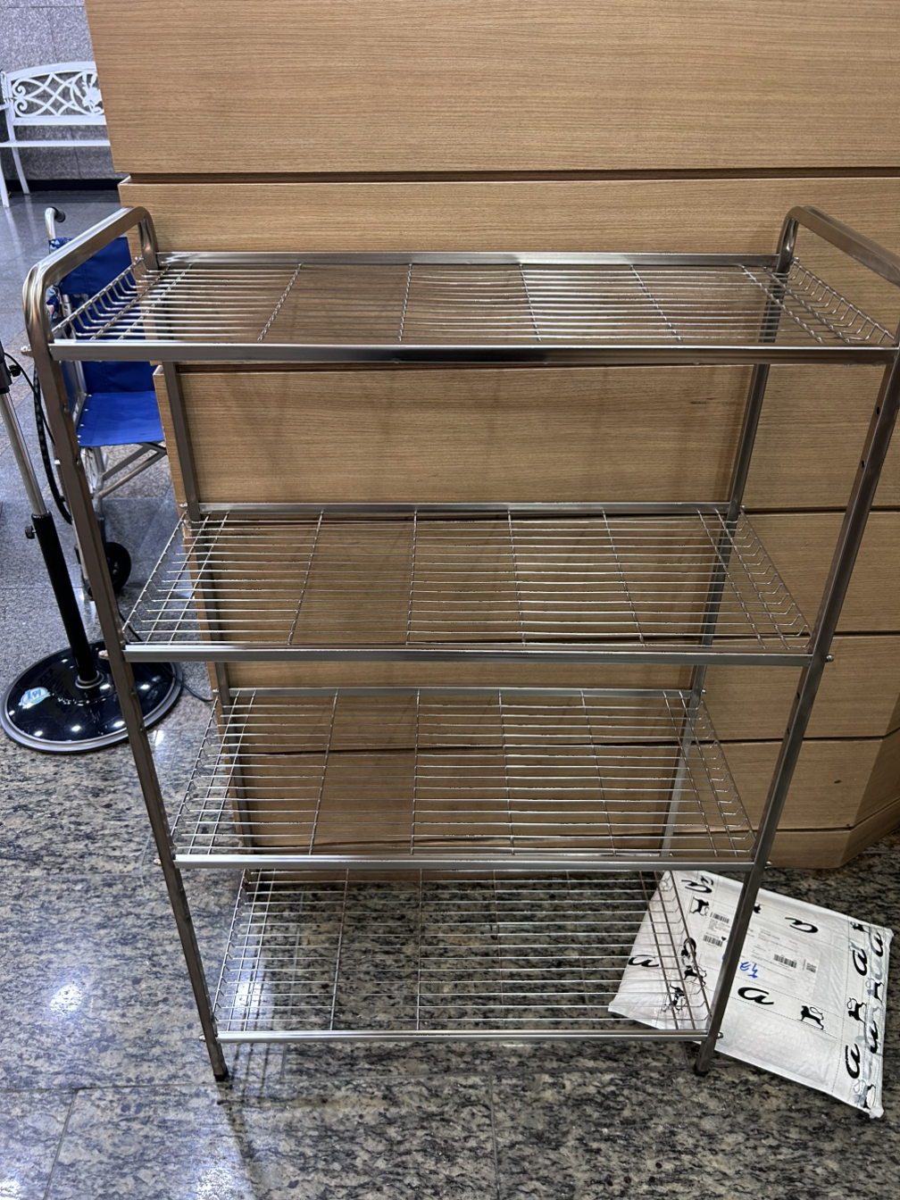 스테인리스 4단 선반. 직접 조립하면서 몽키를 돌릴 때, 어디선가 "내가 왜 이걸 하고 있나..." 싶은 허무함도 있지만 그러니까 내가 박반장이지 했다.