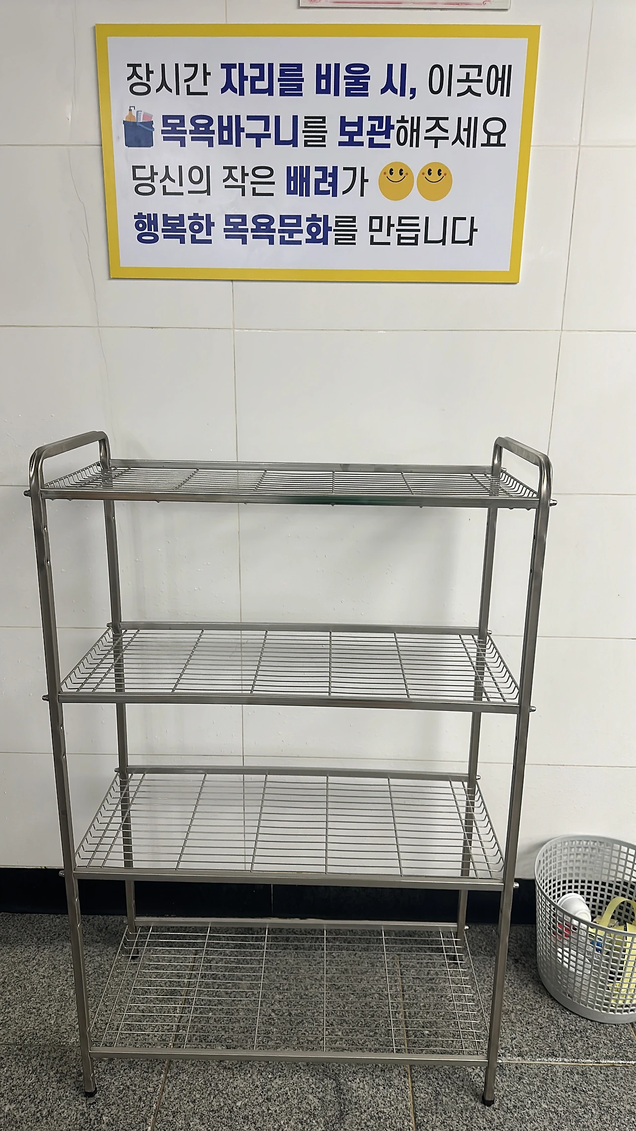 며칠 뒤. 하나, 둘. 선반 위에 바구니가 올라오기 시작했다. 사람들의 마음이 움직이기 시작한 거다. 어느 날은 4단 선반이 풀장착된 걸 보았다. 나는 그날, 진심으로 '풀방의 행복'을 느꼈다. '자리를 맡아두지 마세요.'라는 강압적인 말로는 해결이 안 되었겠지.