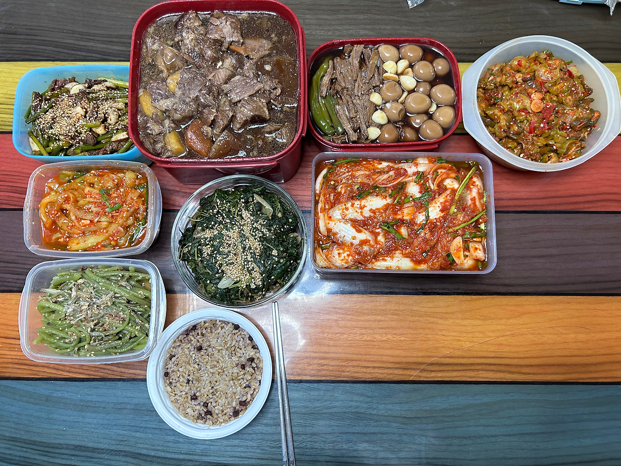 시댁에 갈 때마다 대파, 상추, 애호박, 가지 등을 주셨다. 이번에는 멜론수박과 방울토마토 그리고 텃밭에서 가꾼 농작물들로 밑반찬을 만들어서 주셨다.