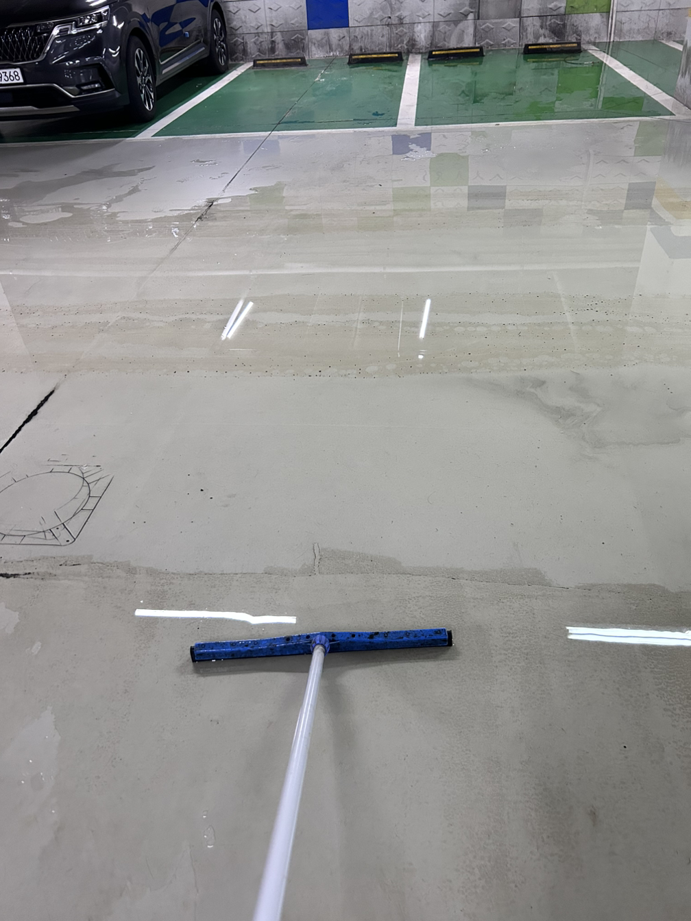그 사이 지하 주차장은 이름처럼 '주차'보다는 '연못'에 가까운 풍경이 되었다. 차가 많지 않은 심야라 그나마 다행이었지만 그 물을 다 치워야 한다는 생각에 지금껏 끌어오던 하루의 피로가 한꺼번에 발끝부터 밀려왔다. 뚫는데 지쳐 있는 분들에게 미안해서 나도 열심히 돕는다. 이쯤 되면 물바다를 치우는 데도 어떤 기술이 있을 법도 한데 그런 요령 따위는 없다. 정말 없다. 그냥 물치우는 도구로 왔다 갔다 하는 거다. 무한 반복으로. 물 흡입 청소기를 동원해 보지만 그날의 물은 그 모든 장비를 비웃듯 미동도 하지 않았다. 그래서 결국 손으로 몸으로 그냥 무식하게 몇 시간을 들여 치웠다. 깨끗해졌다. 그렇게 해서 드디어 오늘이 끝났다. 정확히는 새벽 3시. 그러니까 이건 더 이상 오늘이 아니라 새로운 내일"이 되어 버렸다.