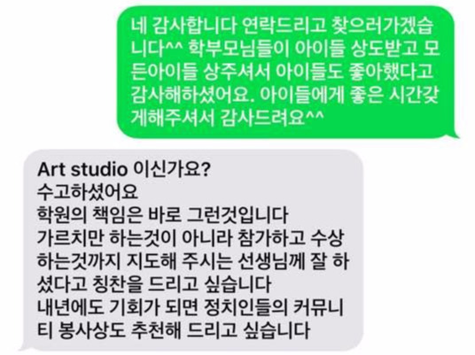 어머님들도 다 좋아하셔서 그림도 찾아오고, 감사의 인사도 전할 겸 효사랑 선교회에 텍스트 메시지를 보냈다. 모든 아이들에게 상을 주셔서 아이들과 어머님들이 너무 좋아하셨다고.. 인사를 전했다.