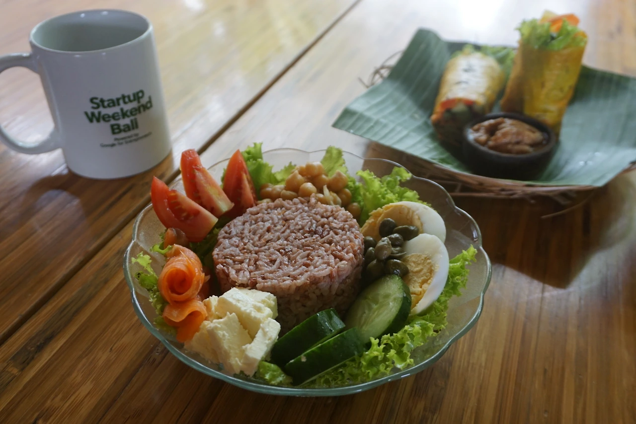 난 항상 실외 공간에서 일했다. 후붓에 에어컨이 없기 때문에 종종 바람이 부는 실외공간을 더 선호한다. 바로 앞에 논을 보고 일하면 시각적으로 힐링되는 기분도 들고, 비가 오면 빗소리에 시원한 느낌이 바로 전해진다. 출근하면 항상 보는 친구들이 있다. 눈이 마주치면 가볍게 인사하는데, 인테리어 디자인과 앱 개발을 하는 인도네시아 커플, 유희열의 이마를 닮은 러시아 안드로이드 개발자, 머리에 꽃을 달고 다니는 사랑스러운 호주 마케터, 브라질에서 태어난 전화 영어 선생님 등 다양한 직종의 디지털 노마드들이 매일 출근해서 일을 한다. 실외 공간에는 카페도 있어서 점심 대신 샐러드나 과일 주스를 시켜 먹는다.