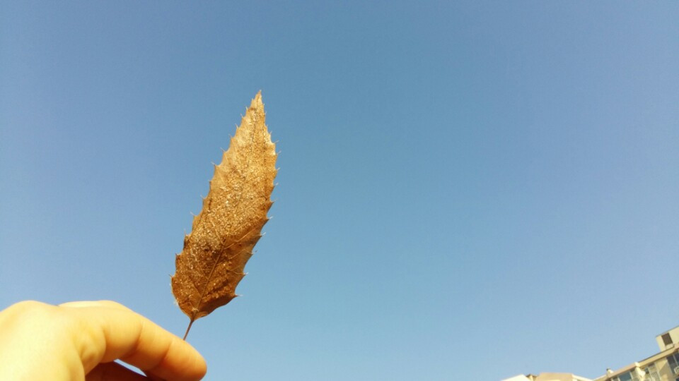 우연히 발견한 낙옆은 쓸쓸해보였다.