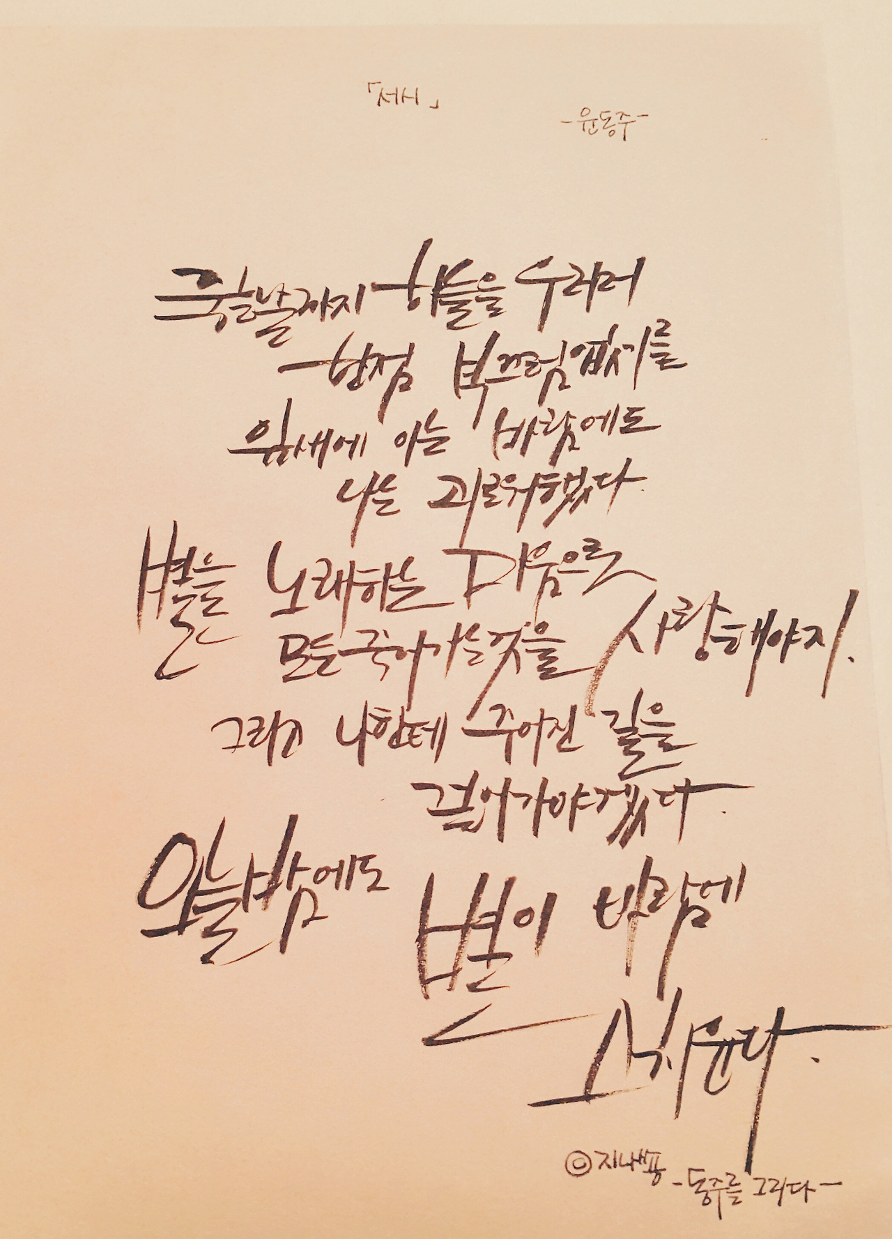 서시를 옮겨적은 캘리 한장 띄웁니다-