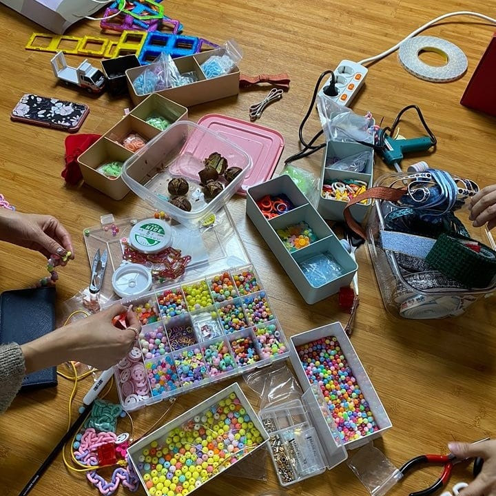 + 엄마는 돈을 벌기 위해 가내수공업을 하고... (는 아니고 독박육아맘들이 모여 애들 풀어 놓고 소일거리;;로 마스크끈, 머리핀 등등을 만드는 구슬픈 샷)