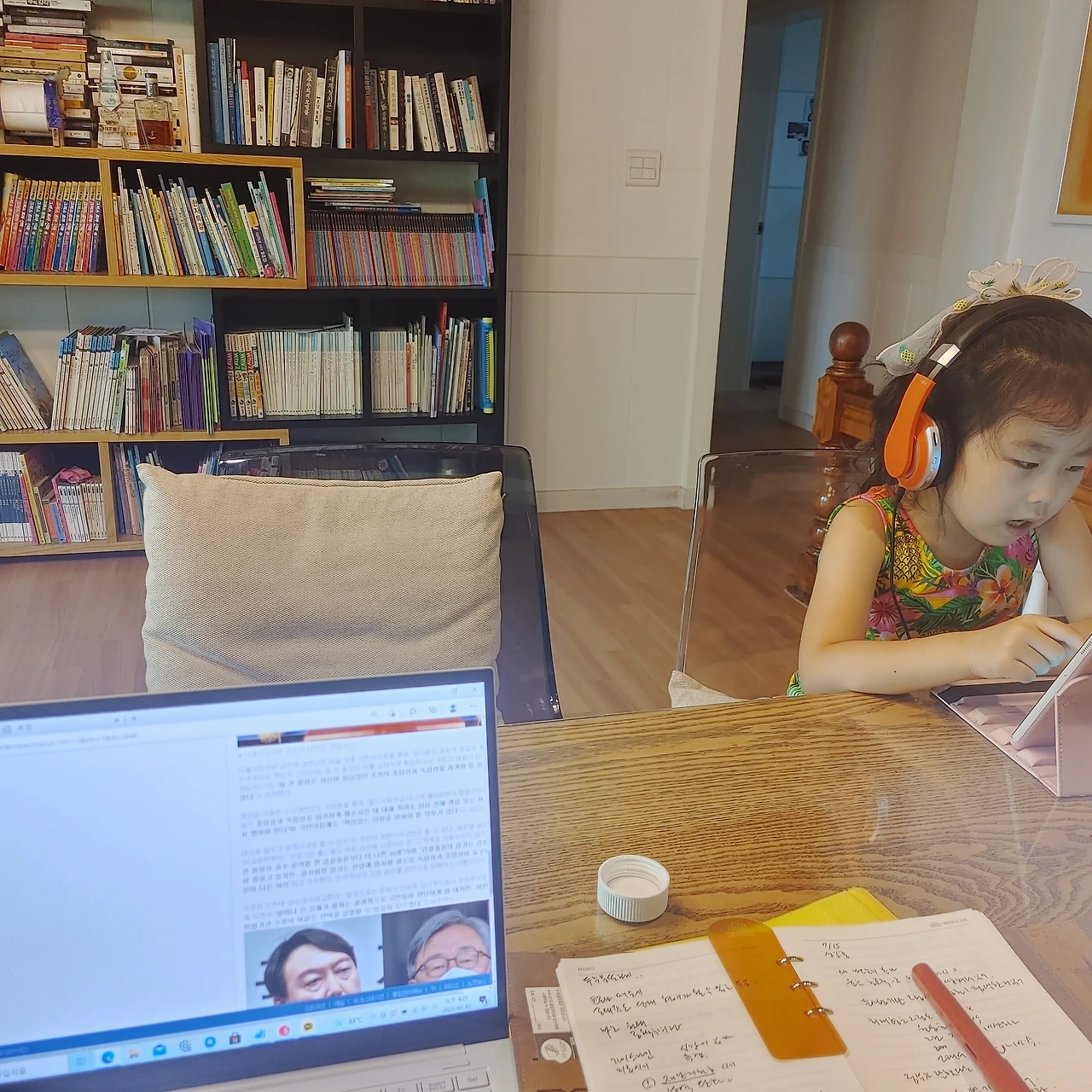 엄마 이제 퇴근이야! 하고 딸한테 가면 이제 공부시간이다. 워킹맘은 할머니,할아버지를 모시고 살면서 돌발상황을 최대한 통제해보고자 하는데, 대신 조부모님은 결코 손녀를 학습 가지고 압박하지 않는다. 엄마가 일하는 동안 즐거웠던 설하는 퇴근한 엄마를 보면 반가우면서도 곧 시작될 학습시간이 싫어서 묘한 표정을 짓는다. 다행히 저녁까지는 할머니한테 얻어 먹었구나.