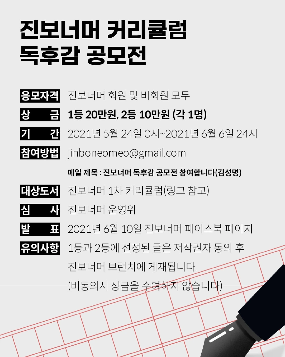 그래서 준비했습니다. 진보너머의 독후감 공모전~