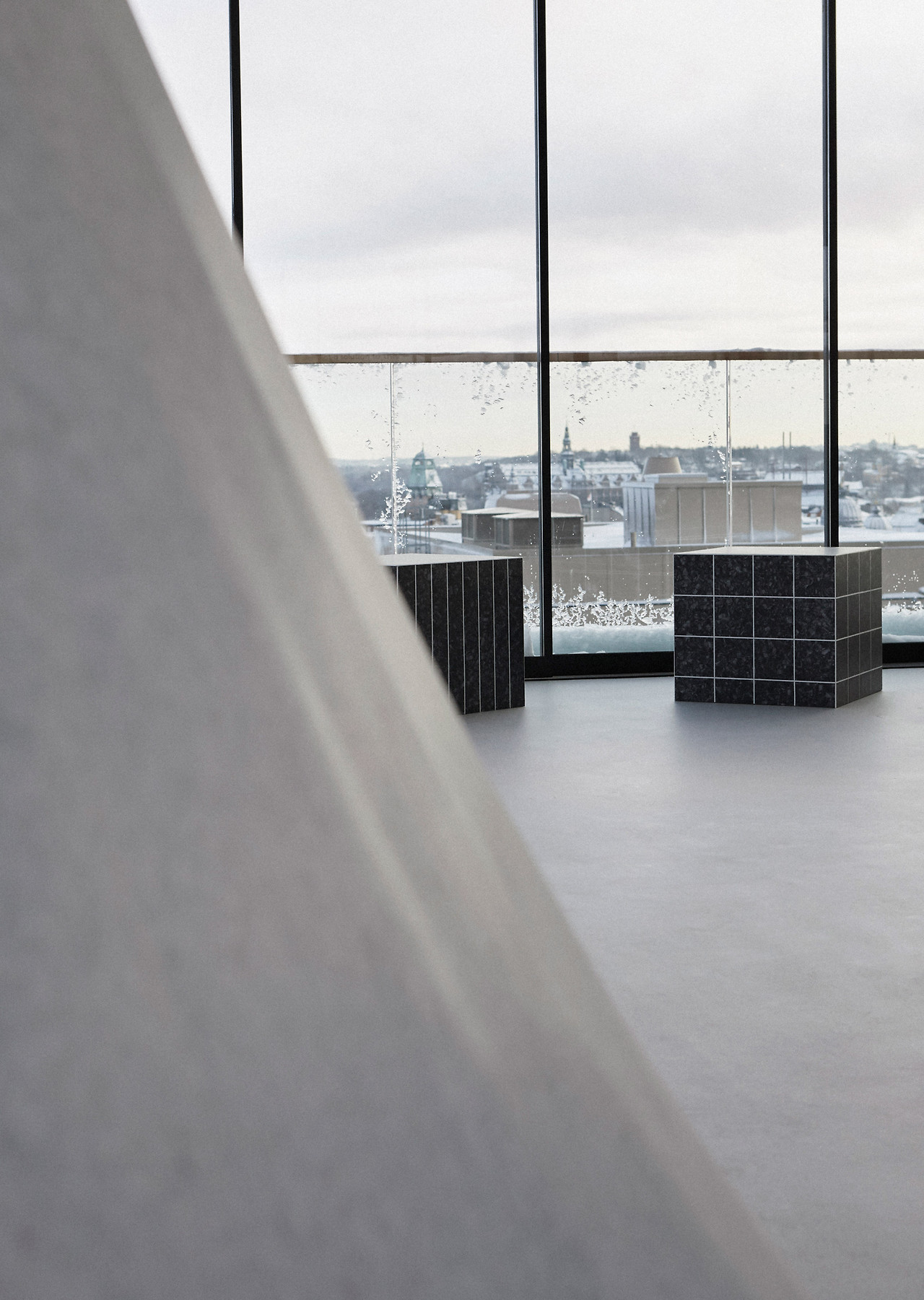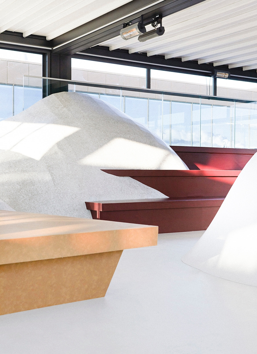Snowtopped는 프랑스의 바닥재 제조사 Tarkett이 스톡홀름의 디자인 스튜디오 Note Design Studio와 함께 Tarkett의 바닥재로 무엇이 가능한지 탐구하기 위한 전시로, 부드럽고, 유연한 실루엣의 북유럽 겨울 풍경에서 영감을 받았다. 이들은 사람이 많이 다니는 공공장소에 주로 사용하는 바닥재에 열을 가하고 구부려서 다양한 크기와 형태의 눈 언덕 모양을 만들었고, 스톡홀름 중심에 있는 Hotel At Six 옥상 공간에 설치했다.
