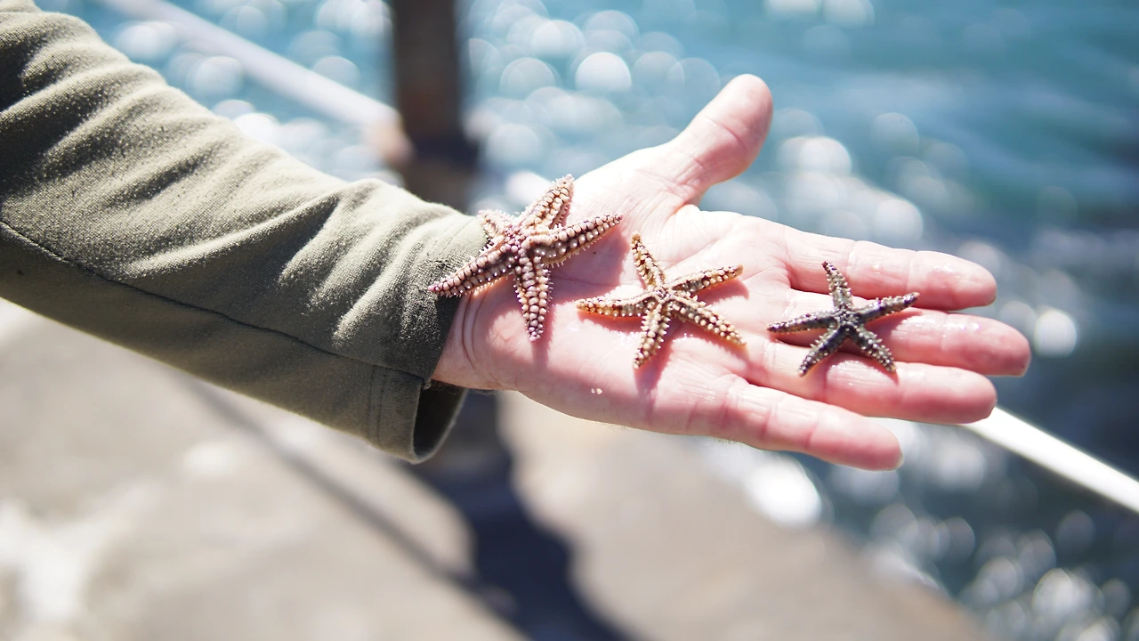 바닥에 불가사리가 몇 마리 있다. 사진을 찍으려고 카메라를 가까이 가져갔다. 구도를 잡고 있는데 뷰 파인더 안으로 거친 손 하나가 들어온다. 방금 전까지 뒤에서 낚시를 하던 할아버지. 내가 불가사리에 관심을 갖는 게 신기했나 보다. 손에 불가사리를 올려놓고 하나씩 가리키며 설명을 해준다. 말은 통하지 않았지만 손짓 발짓을 다해 하고 싶은 이야기를 주고받았다. 사진을 찍고 싶다고 하니 할아버지는 기꺼이 자세를 취해주셨다. 친절한 할아버지. 추억이 하나 늘었다.