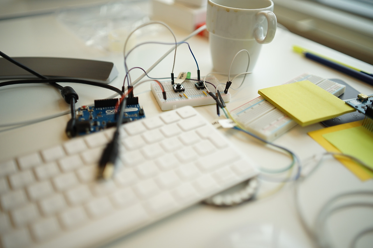 앱, 웹 혹은 화면이 있고, 터치로 동작하는 디지털 프로덕트 UI 프로토타입은 주로 목적에 따라 프레이머나 플린토, 프로토파이로 프로토타입을 만든다. 그러나 공기청정기, 인공지능 스피커 같이 화면이 없고, 사용자 입력이 제한되어 있는 피지컬 프로덕트의 UI 프로토타입은 아두이노와 프로세싱, 혹은 라즈베리파이로 프로토타입을 만든다. 프레이머 이야기는 조금 나중에 다루기로 하고 아두이노로 UI 프로토타입 만드는 방법부터 이야기해볼까 한다.