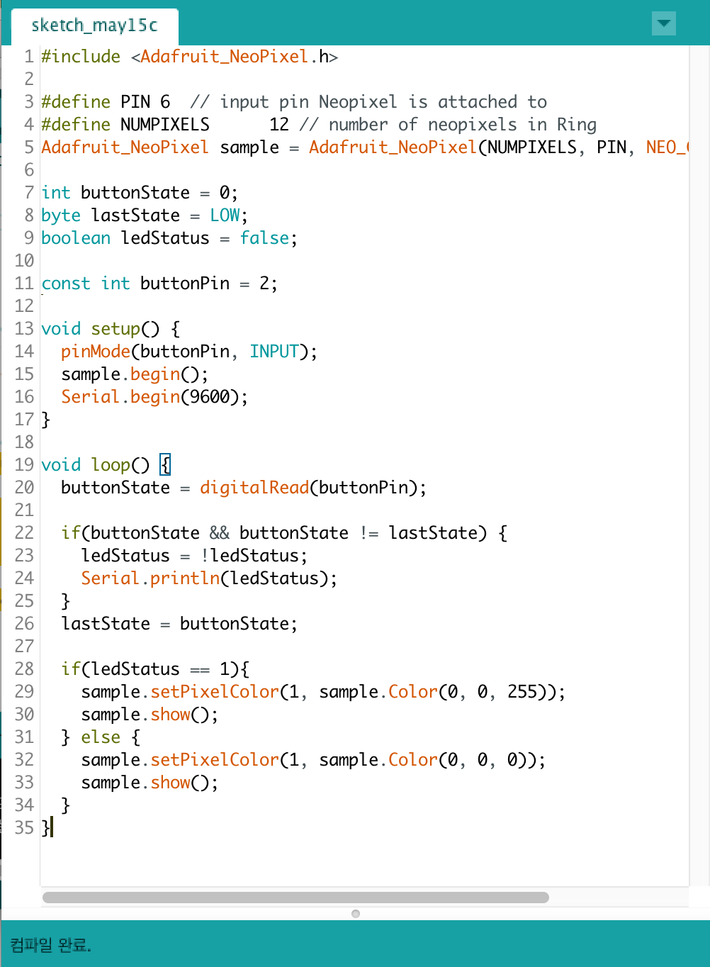 버튼으로 네오픽셀 작동
