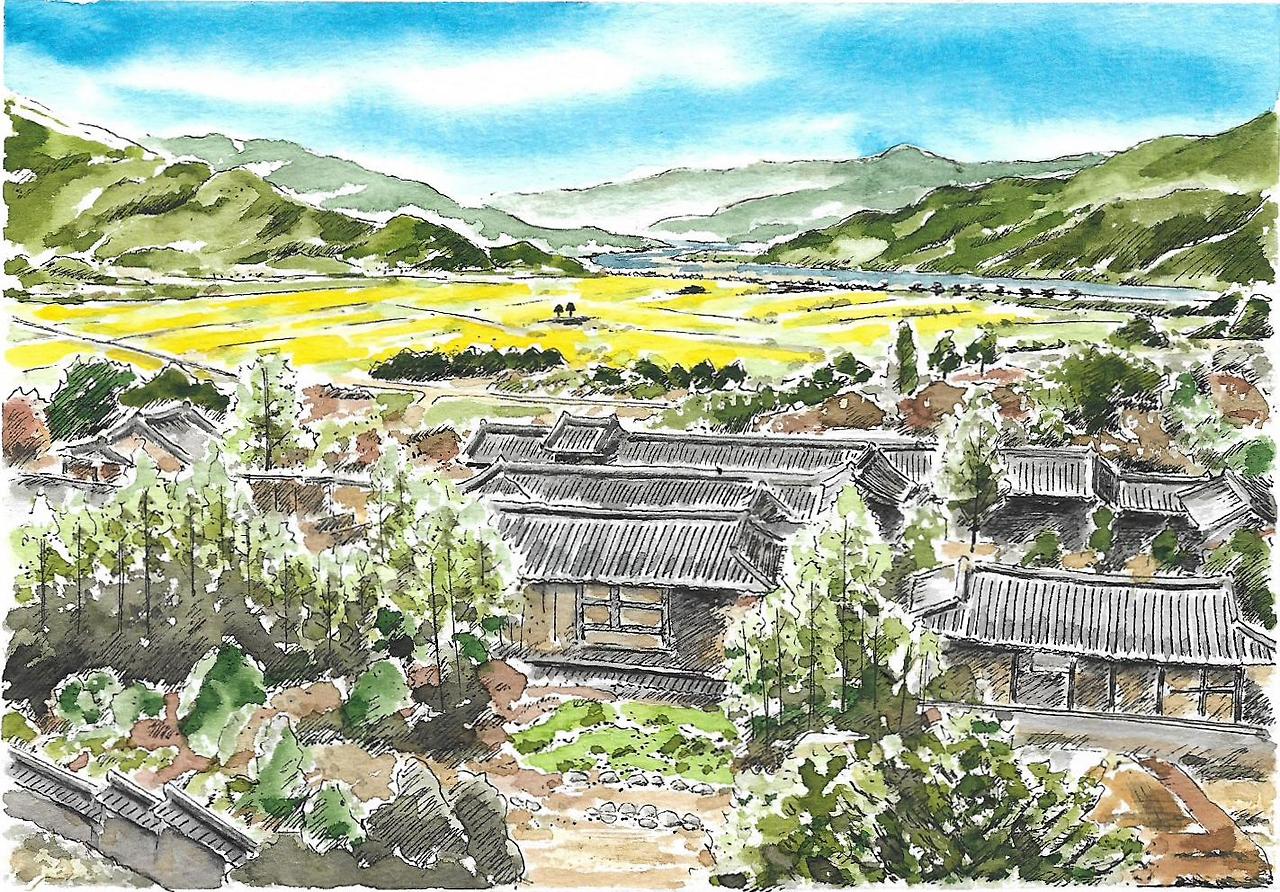 운조루(雲鳥樓)가 앉은자리가 그렇다고 한다. 멀리 백두산에서부터 이어온 백두대간이 섬진강을 목전에 두고 멈춰 서면, 지리산이다. 노고단에서 뻗어 내린 형제봉을 주산으로 하고, 아이를 품듯 좌우로 팔을 벌린 어미처럼 왕시루봉과 천왕봉을 각각 좌청룡 우백호로 둘렀다. 마주 앉은 유모처럼 오봉산이 안산이 되고, 병풍을 두르듯 계족산이 조산을 이루어 고택이 자리한 오미동은 젖을 문 아이처럼 평온해 보인다. 오른편 먼발치로 섬진강은 에돌아 가는데, 왼편으로 문수골 골짜기에서 흘러들어 들판을 가로지르는 토지천을 끌어안는다. 산을 등지고 물을 마주하며 넉넉한 들을 이루니 풍수를 모르는 눈에도 더할 나위 없어 보인다. 사람을 살리는 땅이다.