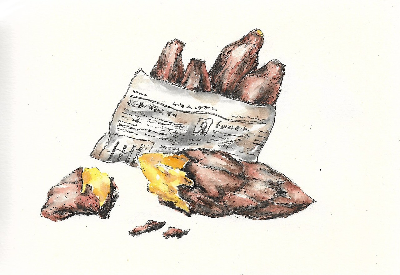 아직 고구마를 굽고 있는 저 사내