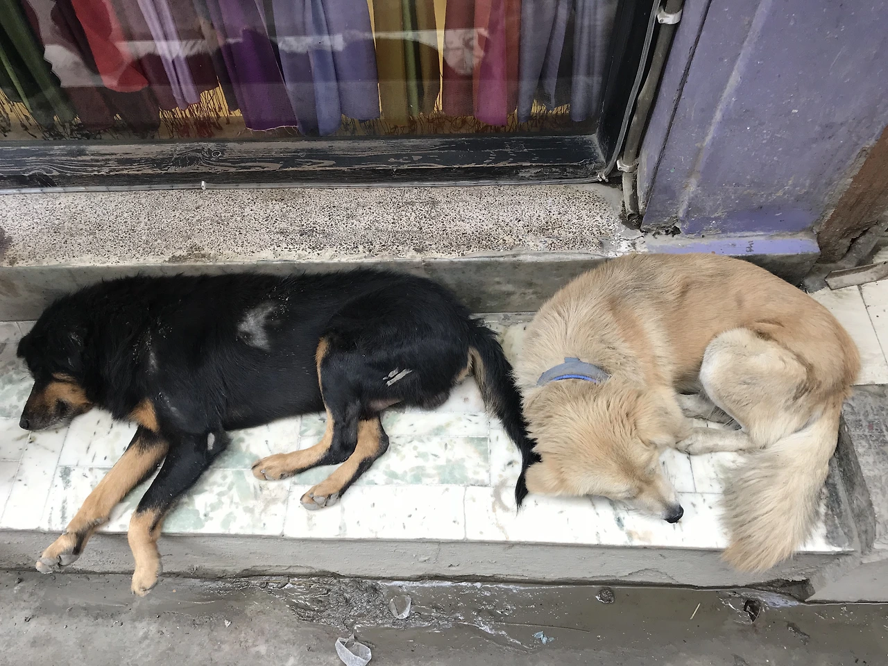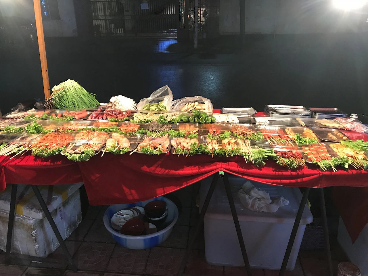 기대라고는 전혀 없이, 오로지 하룻밤 잠만 자기 위해 예약한, 쿤밍의 공항 근처 호텔은 바닥에 깔아둔 기대보다도 더 아래에서 우리를 맞이했다. 허름하고 냄새나는 로비와 방, 물이 내려가지 않는 변기, 씻고 나면 더 오염될 것 같은 샤워실. 그 와중에 배까지 몹시 고팠다. 한밤중이었지만 편의점이라도 찾기 위해 주변을 둘러보러 잠깐 나와 보니 근처에 작은 구멍가게가 있었다. 그 앞에서 꼬치구이도 팔고 있었다. 청결해 보이는 곳이 아니었지만, 위생 같은 걸 따지며 고를 수 있는 선택지는 없었다. 우리는 호텔에 사정을 얘기하고 가까스로 달러를 위안화로 환전해, 그 가게에서 파는 미지근한 맥주와 수상해 보이는 꼬치 몇 개로 허기를 달랬다. 숙소로 돌아와 샤워도 하지 않고 잠깐 눈만 붙였다가 이른 아침 탈출하듯 그곳을 빠져나와 공항으로 향했다.