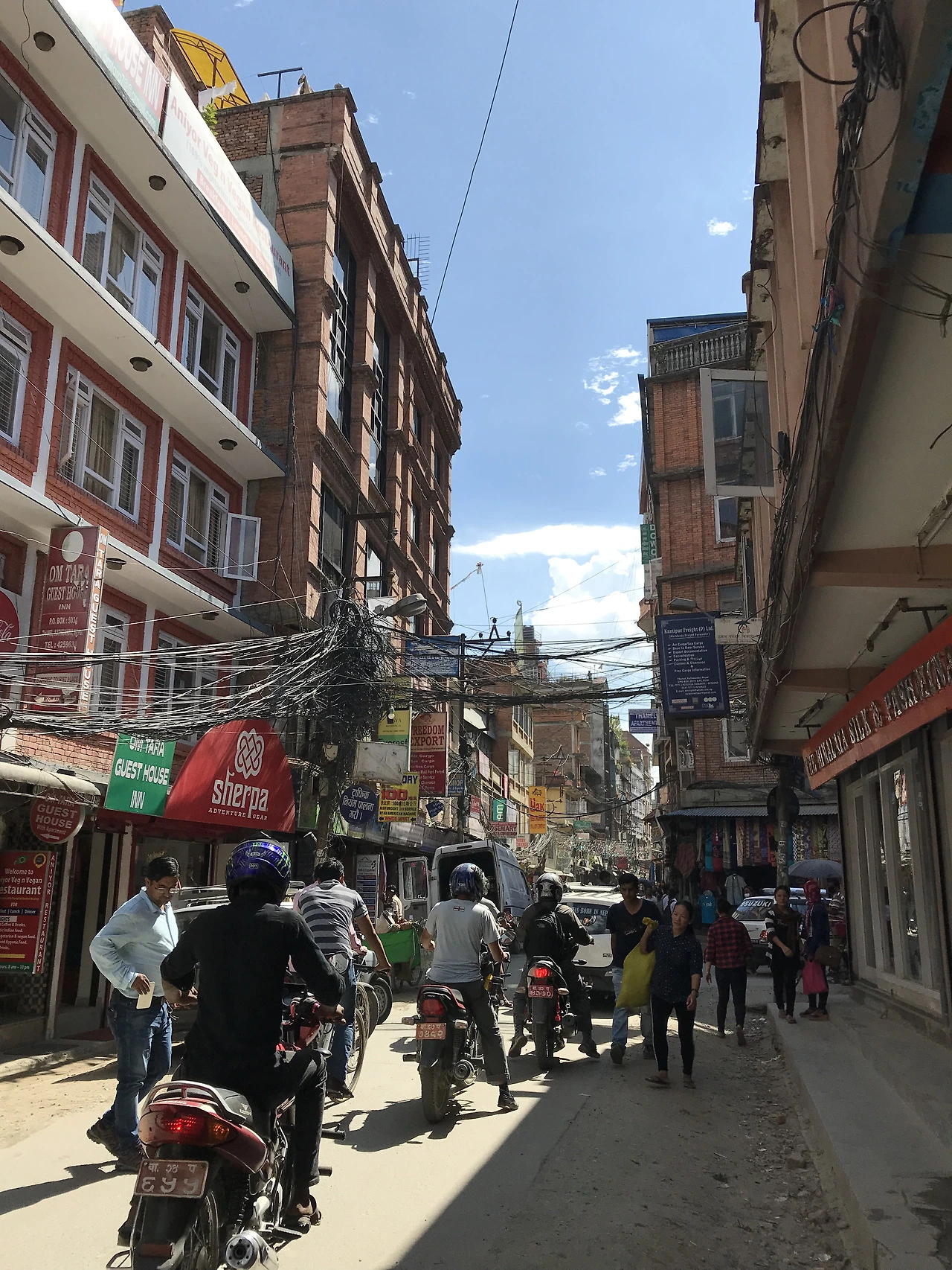 카트만두 타멜 거리에는 음식점과 숙소, 트레킹 용품점, 캐시미어 상점, 옷 가게들이 빽빽하게 모여 있었다. 거기에 자동차와 오토바이, 자전거, 보행자가 뒤엉켜 잠시라도 한눈을 팔면 자동차 타이어가 발등을 살포시 지르밟고 갈 것처럼 복잡하고 아슬아슬했지만, 신기할 정도로 큰 소란 없이 모든 것이 슈욱, 슈욱 돌아가는 재미있는 곳이었다.