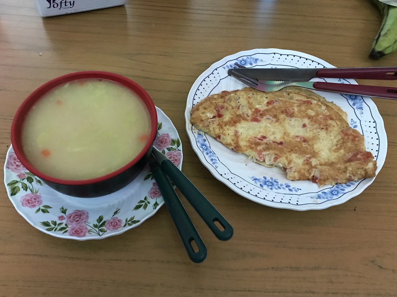 저녁 다섯 시. 볶음밥과 토마토 치즈스파게티, 밀크티와 핫 워터를 주문했다. 컵에 한국에서 챙겨온 미역국 블록을 풀어 넣고, 잠시 고향의 맛으로 몸과 마음을 충전했다.