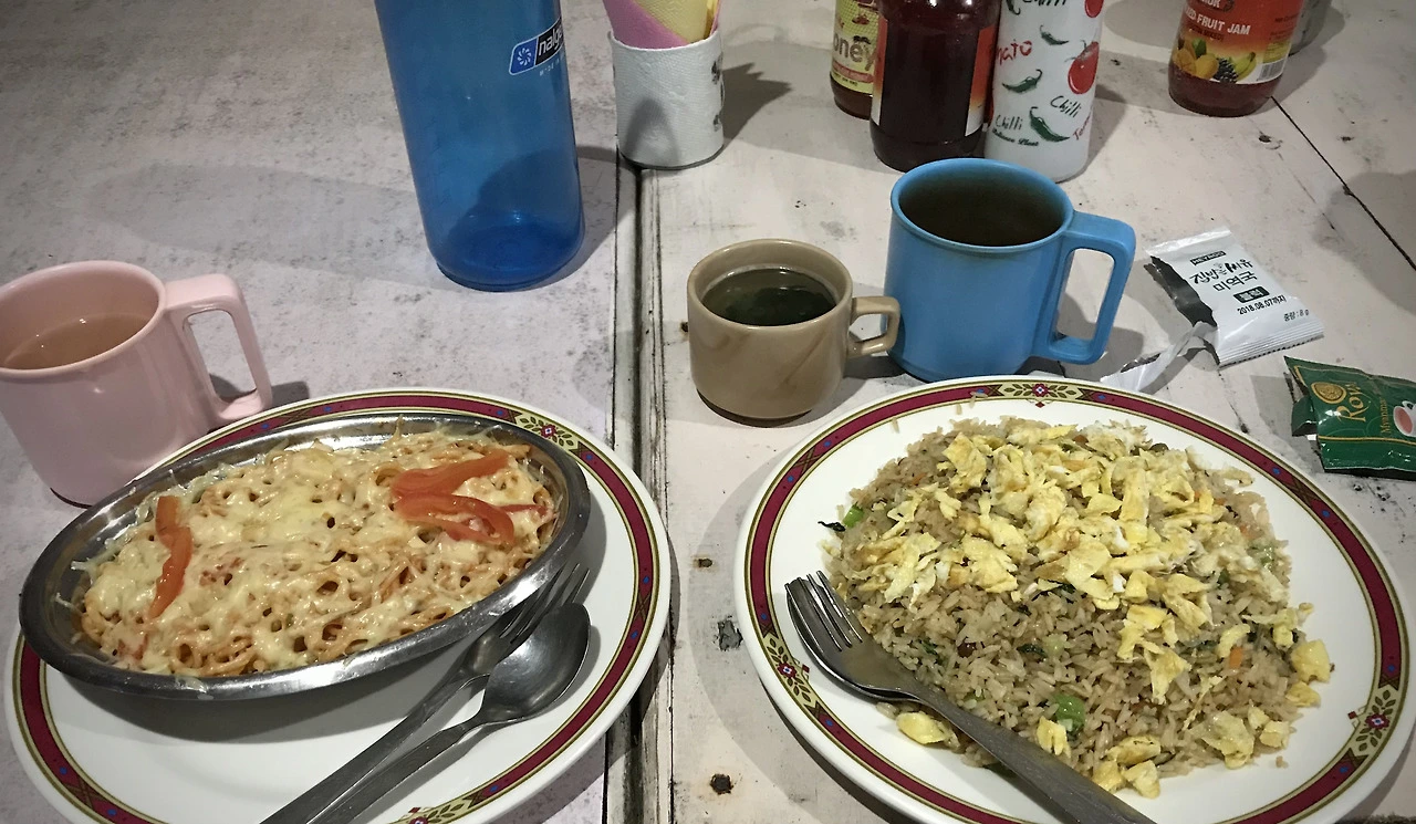 지프에서 내린 시와이에서 점심을 먹고 출발하기로 했다. 볶음밥은 350루피였고, 여기에 180루피를 더해 달걀을 추가했다. 향신료 맛이 거의 느껴지지 않아 무난하게 먹기 좋았다. 곧 오래 걸어야 할 것을 생각하며 접시를 비우고 있는데, 저쪽에서 한국말이 들려왔다. 고개를 돌려보니 초로의 남성 대여섯이 우리를 바라보며 둘이 왔느냐고 물었다. 그렇다고 대답하자, 그들은 환갑 기념으로 친구들과 함께 왔다가 이제 내려가는 길이라고 했다. 말끝과 표정에는 약간의 득의양양함이 묻어 있었다.