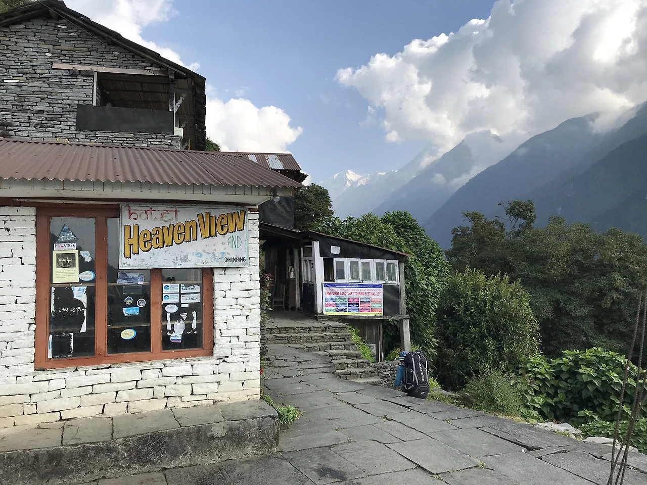 지누단다는 첫날 밤을 묵을 목적지였다. 포터가 롯지 스태프에게 방이 있는지 문의하는 동안 마당에서 잠시 쉬었다가, 배정받은 방에 짐을 풀었다. 가이드와 포터들은 롯지마다 따로 묵는 방이 있는 듯했다.