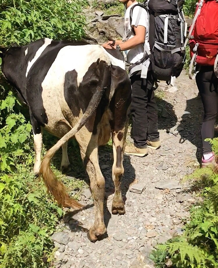 식사를 서둘러 마치고 롯지를 나섰다. 출발부터 계단, 또 계단, 끝없는 계단의 연속이었다. 해가 비치기 시작하자 온몸은 다시 땀으로 범벅이 되어갔다. 더위에 지칠 즈음, 처음 보는 버펄로가 눈앞에 나타났다. 잠시 후에는 산양들이 옆으로 떼를 지어 이동하는 모습도 보였다. 신기하고 귀여운 모습에 시선을 빼앗겼고, 한참 바라보는 사이 다시 기운이 돌아왔다.
