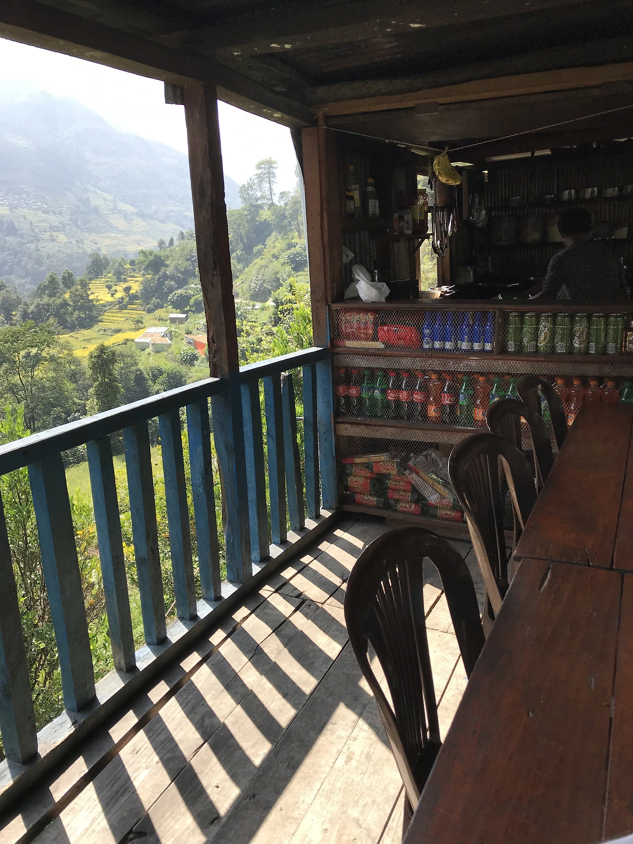 이번에는 내리막이었다. 계단을 내려가고 또 내려갔다. 그리고 출렁다리를 건너 다시 오르막을 오르니 시누와 롯지(2340m)가 나타났다. 그곳에서 점심을 먹기로 했다. 메뉴판을 들고 신중하게 훝어보았지만, 새로울 것은 없었다. 결국 토마토 치즈피자와 콜라 한 캔을 시켰다. 피자에서도 어김없이 은은한 향신료의 맛이 났다.