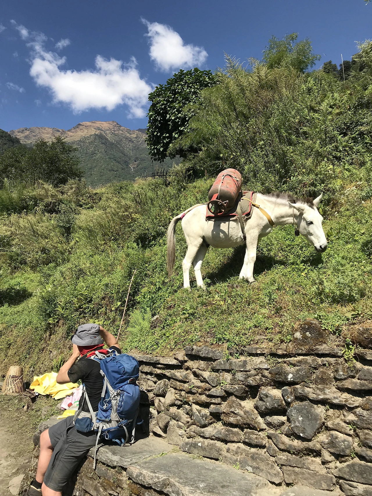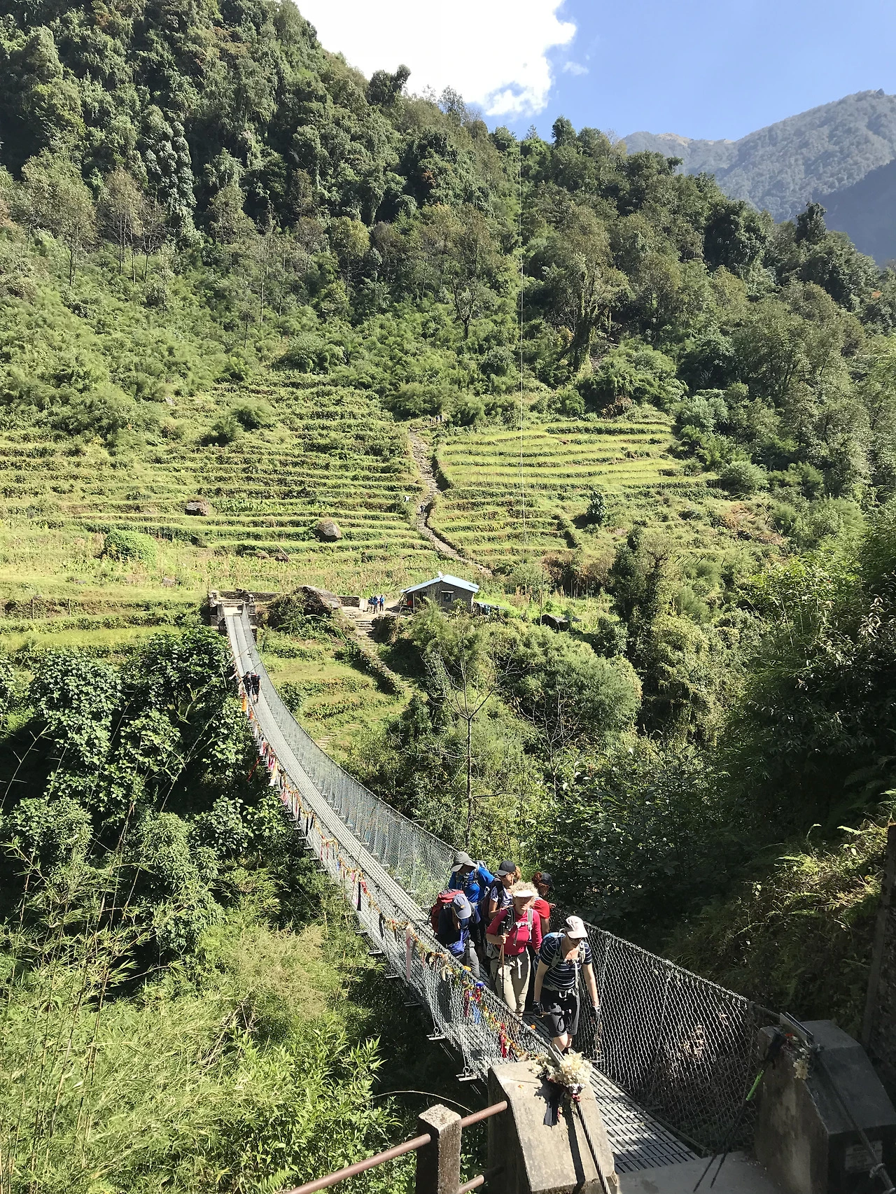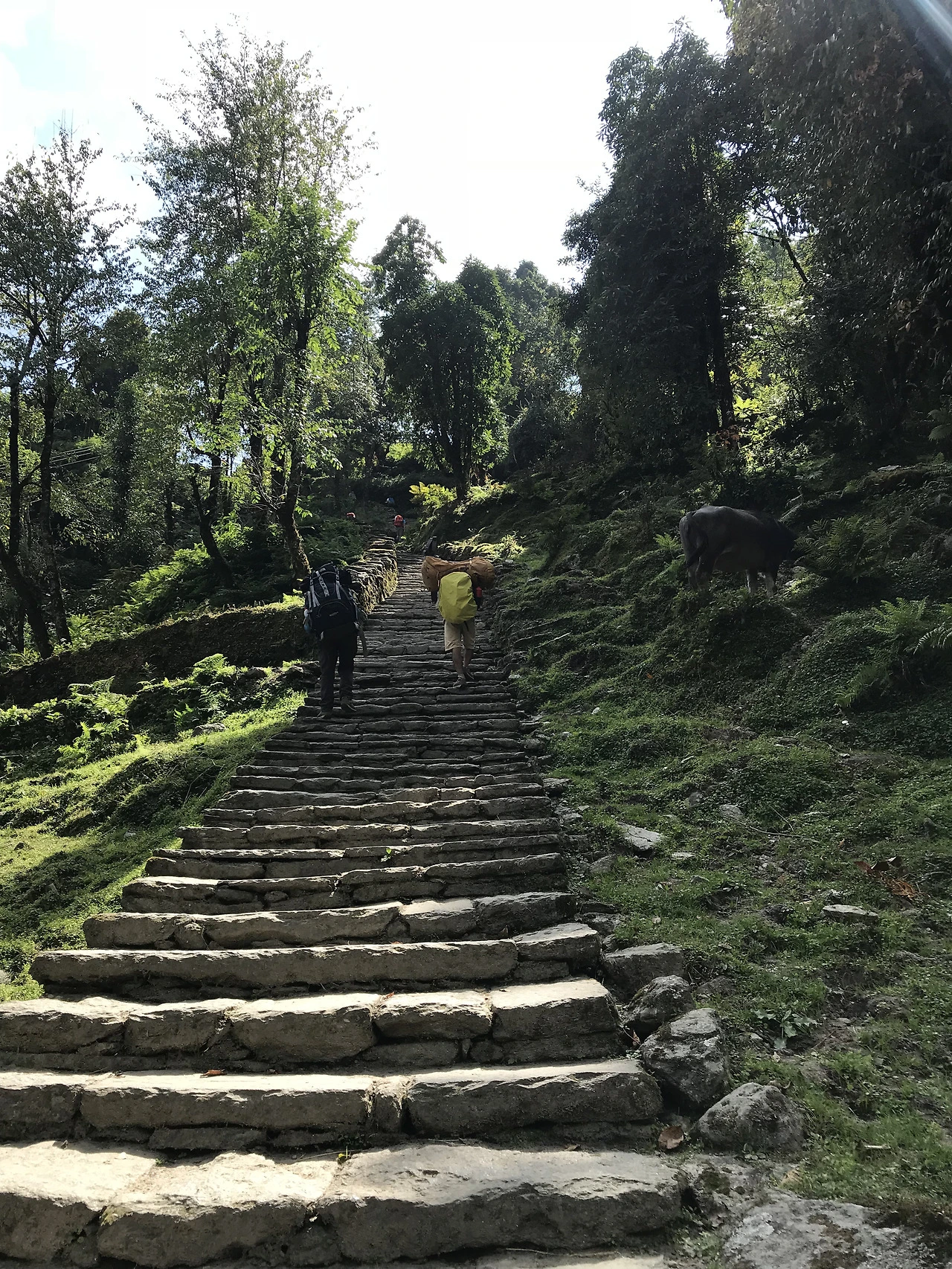 이윽고 시와이–촘롱, 이른바 ‘죽음의 땡볕 계단’ 구간이 나타났다. 계단은 하늘을 뚫고 지옥의 문턱까지 이어지듯 자비 없이 계속됐고, 햇빛은 왕성한 기세로 쏟아졌다. 육신과 영혼이 완벽히 탈탈 털린 끝에, 오후 한 시가 되어서 촘롱에 도착했다. 배가 몹시 고팠지만, 몸이 고된 탓에 아침에 되살아났던 식욕은 다시 파업에 들어갔다. 라면과 삶은 달걀을 욱여넣어 가까스로 에너지를 보충하고 다시 길을 나섰다. 목적지는 지누단다였다.