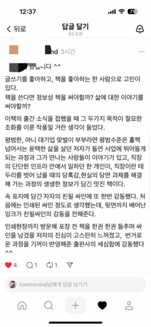 두 번째 연락은 출판사의 댓글이었다. 이때까지만 해도 나는 브런치에 별도 이메일이나 연락처를 공개해두지 않았다.