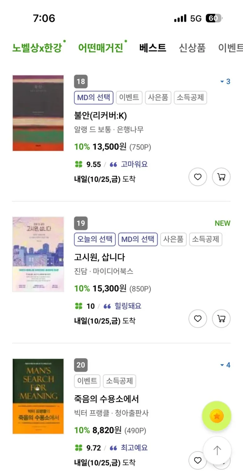 - 종합 베스트셀러 에세이 19위 등극 (10/24)