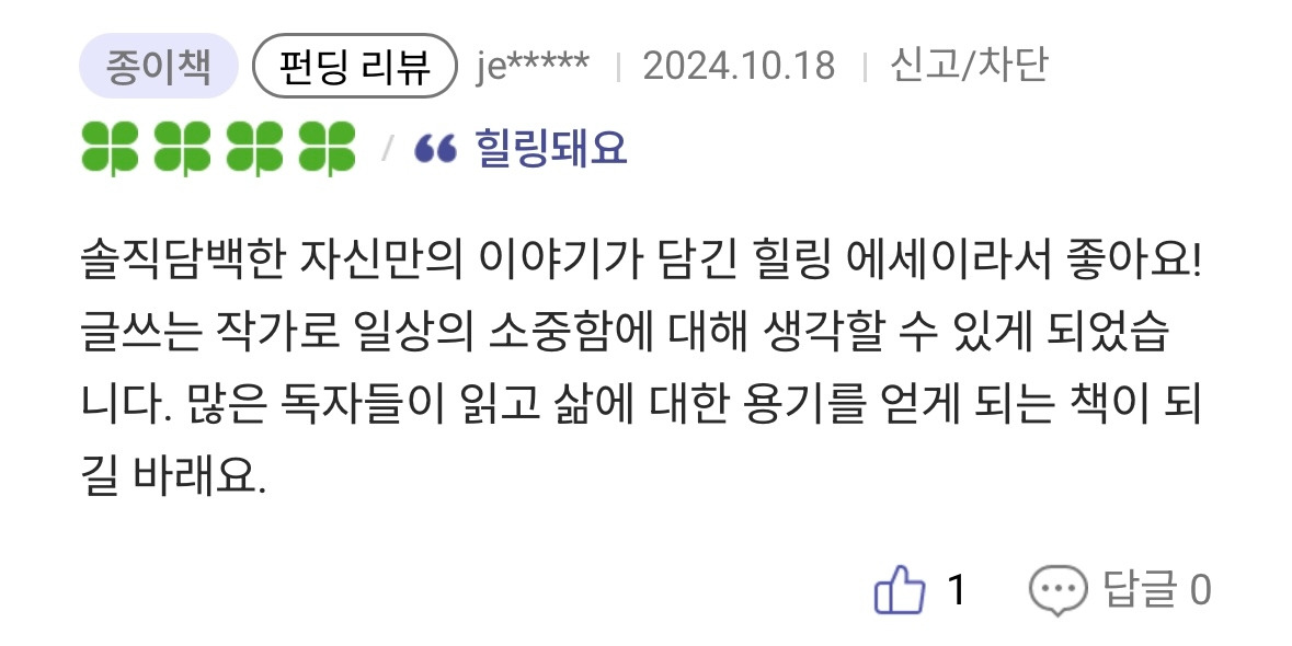 이러한 후기를 들을 때면, 그래도 용기 내어 나의 이야기를 쓰길 잘했다!라는 생각이 든다. 그리고 그렇게 할 수 있었던 것에는 나의 부캐, 진담이라는 필명이 한몫한 것 같다.