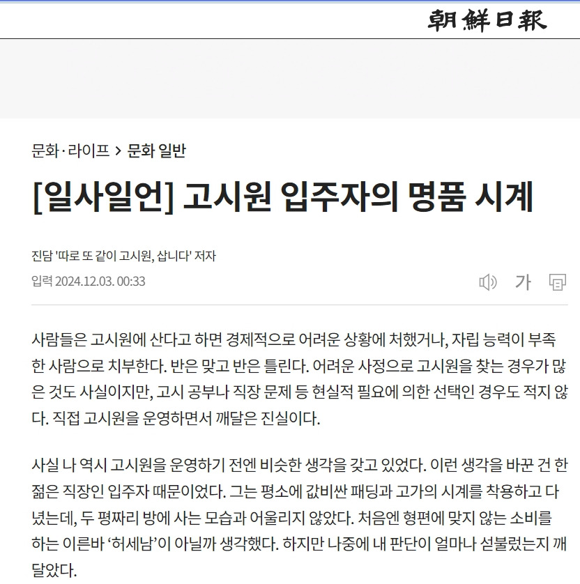첫 칼럼은 저의 정체성인 고시원 이야기를 담았는데요, 2회차 부터는 일상의 다양한 소재로 확장하여 인생 이야기를 나눌 예정입니다. 첫 책의 소재가 고시원인지라 그간 고시원 스토리만 집중적으로 이야기했었는데, 국내 메이저 신문사인 주요 일간지, 조선일보에서 보다 다양한 이야기를 나눌 수 있게되어 너무 기쁩니다. ^^