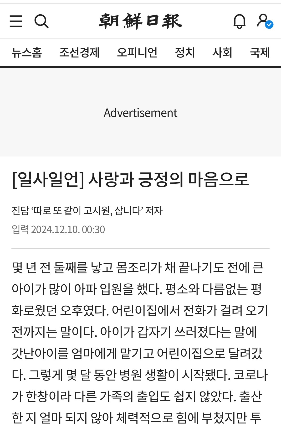 책을 출간하고 많은 기회들과 닿았습니다. KBS1 <임수민의 지금 이 사람> 라디오 방송에도 출연하였고, 조선일보의 <잠깐 이 저자> 코너에 인터뷰를 하기도 하였습니다. 그리고 또 한가지, 기쁜 소식은 12월 한달 간 조선일보 '일사일언' 이라는 코너에서 고정 칼럼 연재를 하게 된 일입니다.