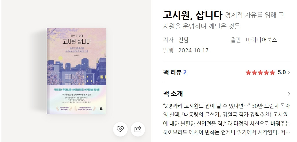 안녕하세요! <따로 또 같이 고시원, 삽니다>의 저자 진담 작가입니다.